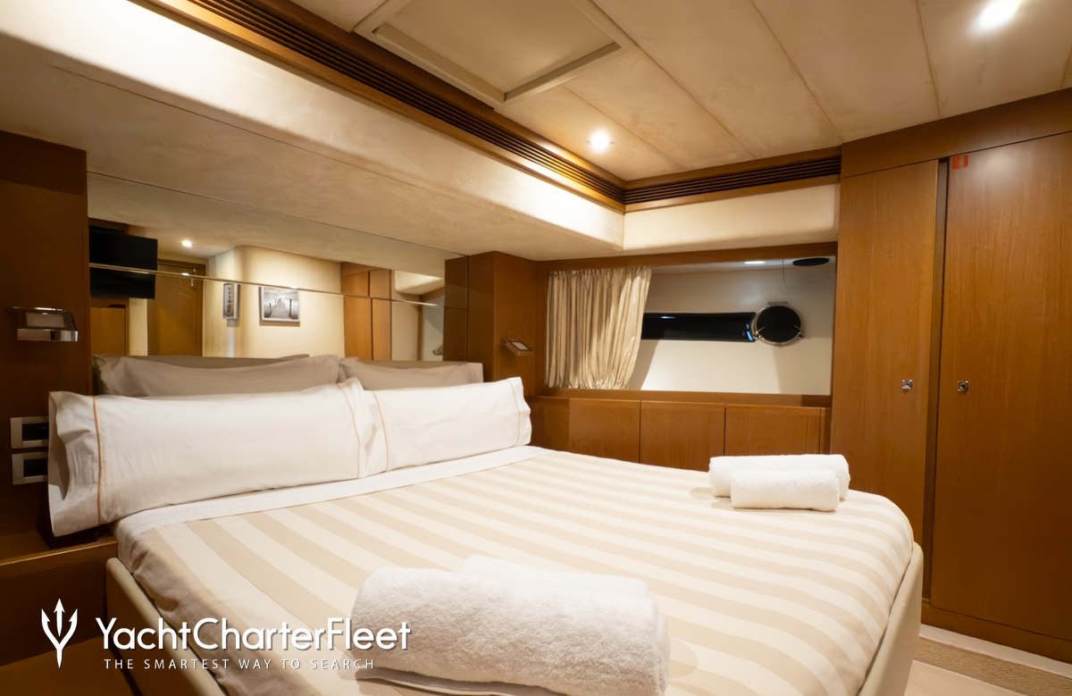Irene offers guest accommodation for up to 9 guests in 4 suites comprising a master suite, one double cabin and two twin cabins. She is also capable of carrying up to 4 crew onboard to ensure a relaxed luxury yacht charter experience.