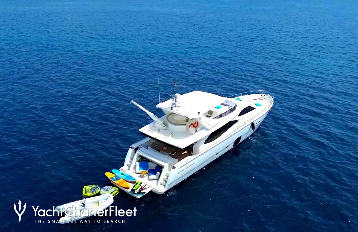 The 24.05m/78'11" 'Irene' motor yacht built by the Italian shipyard Ferretti Yachts is available for charter for up to 9 guests in 4 cabins. This yacht features interior styling by Italian designer Zuccon.
