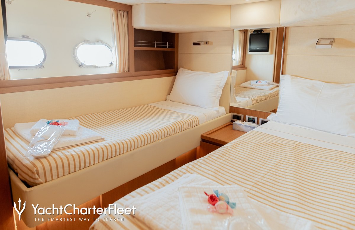 Irene benefits from some excellent features to improve your charter including Wi-Fi connectivity, allowing you to stay connected at all times, should you wish. Guests will experience complete comfort while chartering thanks to air conditioning.