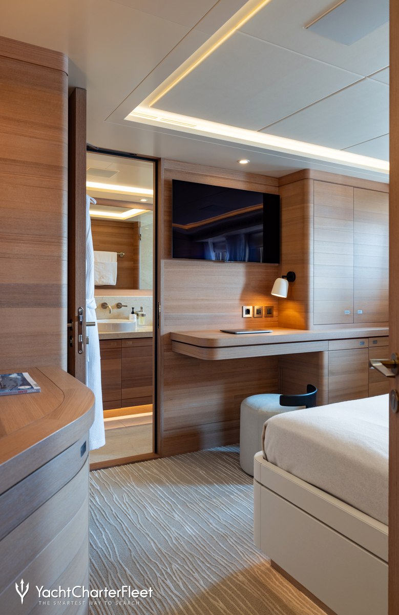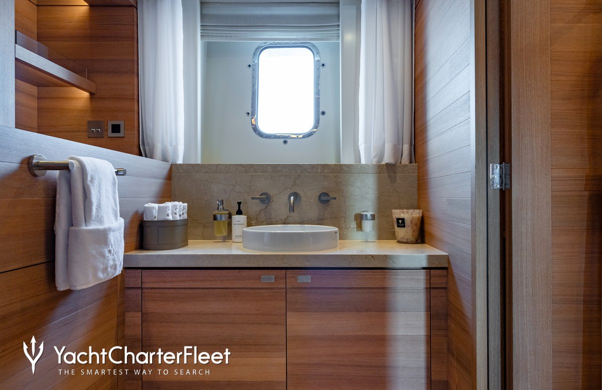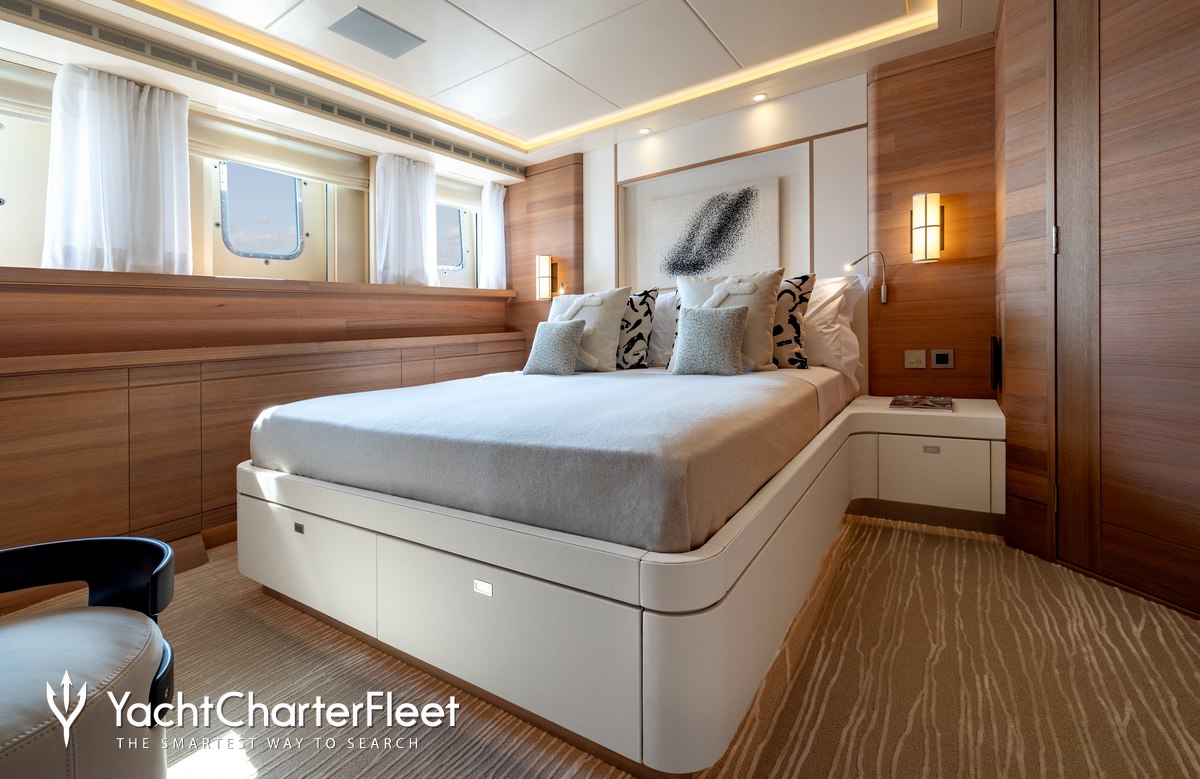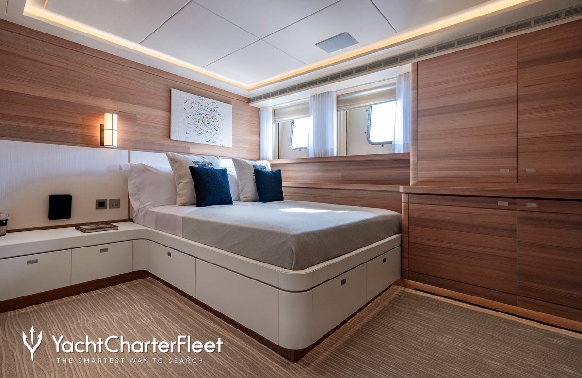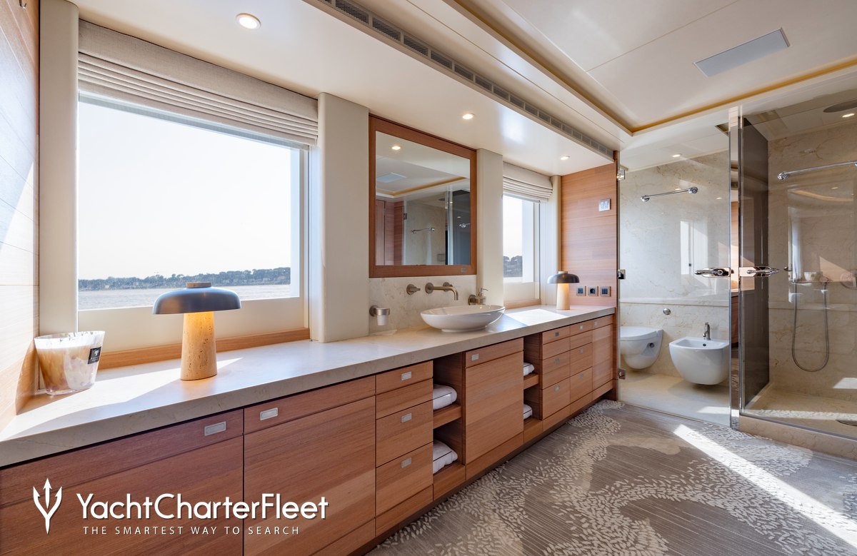 Built in 2015, Mouna offers guest accommodation for up to 10 guests in 5 suites comprising a master suite, two VIP cabins, one double cabin and one twin cabin. The master suite features extensive storage space provided by the dressing room benefits from a his and her bathroom. She is also capable of carrying up to 11 crew onboard to ensure a relaxed luxury yacht charter experience.