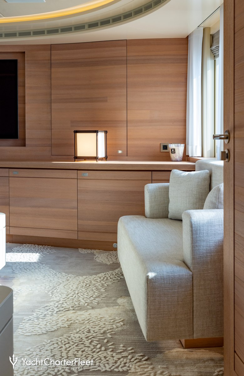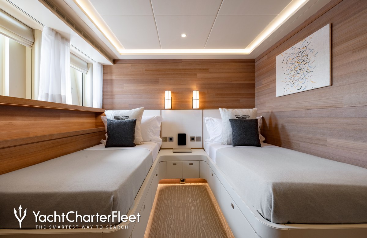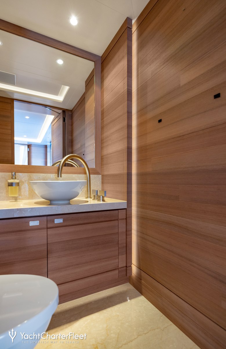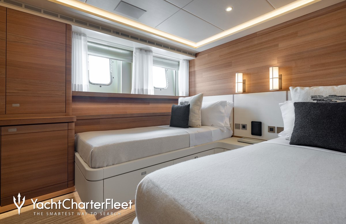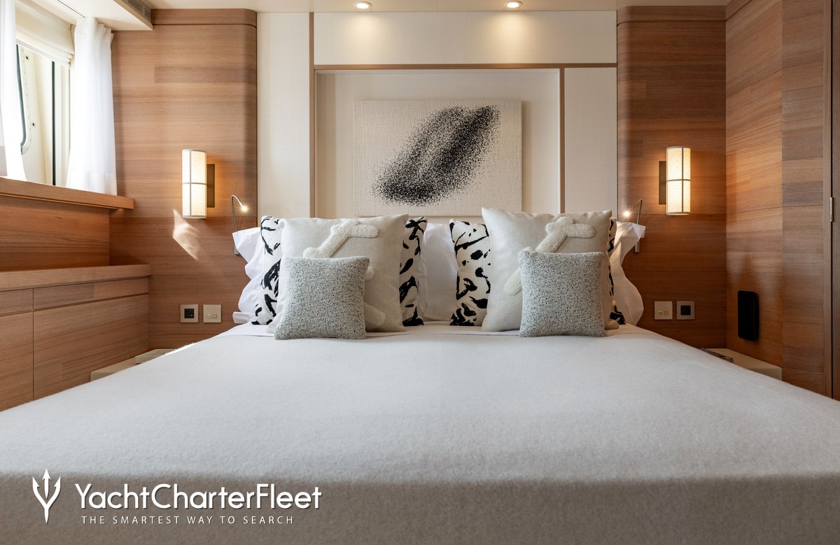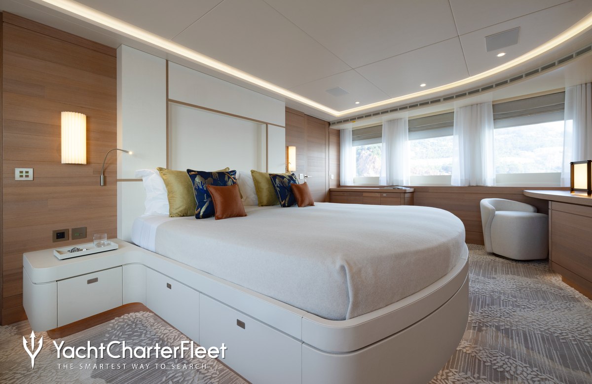 Built in 2015, Mouna offers guest accommodation for up to 10 guests in 5 suites comprising a master suite, two VIP cabins, one double cabin and one twin cabin. The master suite features extensive storage space provided by the dressing room benefits from a his and her bathroom. She is also capable of carrying up to 11 crew onboard to ensure a relaxed luxury yacht charter experience.
