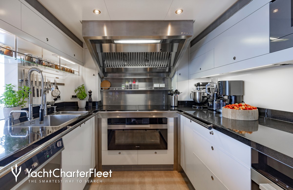 Mouna knows a thing or two about fun on the water, with a selection of water toys and accessories for you and your guests to enjoy whilst on charter. Principle among these are two High-Performance Catamarans sailboats to bring out the explorer in you. In addition there are two Porsche SEABOBs, that allow you to skim along the surface or steer under the crystal water and see a variety of aquatic sea life. If that isn't enough Mouna also features scuba diving equipment, inflatable water toys, snorkelling equipment and surfboards. Mouna features two tenders, but leading the pack is a 7.8m/25'7" Xtenders Tender to transport you in style.