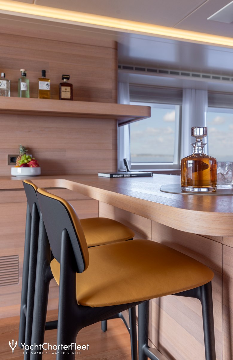 Offering a wealth of uncluttered spaces throughout, expedition yacht Mouna is tailor-made for adventures across the high seas; from the tropics to the poles, where all you need to do is kick-back, relax and enjoy the spectacular vistas as you cruise on by. She is equipped with beach club and gym.