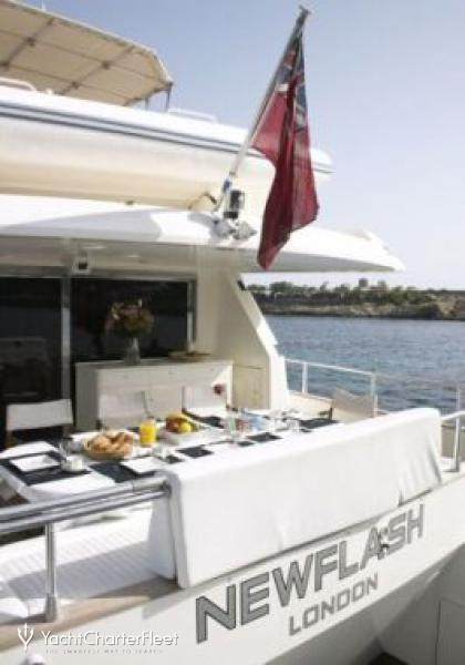 The luxury motor yacht New Flash is displayed on this page merely for informational purposes and she is not necessarily available for yacht charter or for sale, nor is she represented or marketed in anyway by Trident Media Ltd. This document is not contractual. The yacht particulars displayed in the results above are displayed in good faith and whilst believed to be correct are not guaranteed, please check with your yacht charter broker. Trident Media Ltd does not warrant or assume any legal liability or responsibility for the accuracy, completeness, or usefulness of any information and/or images displayed as they may not be current. All boat information is subject to change without prior notice and is without warranty.
