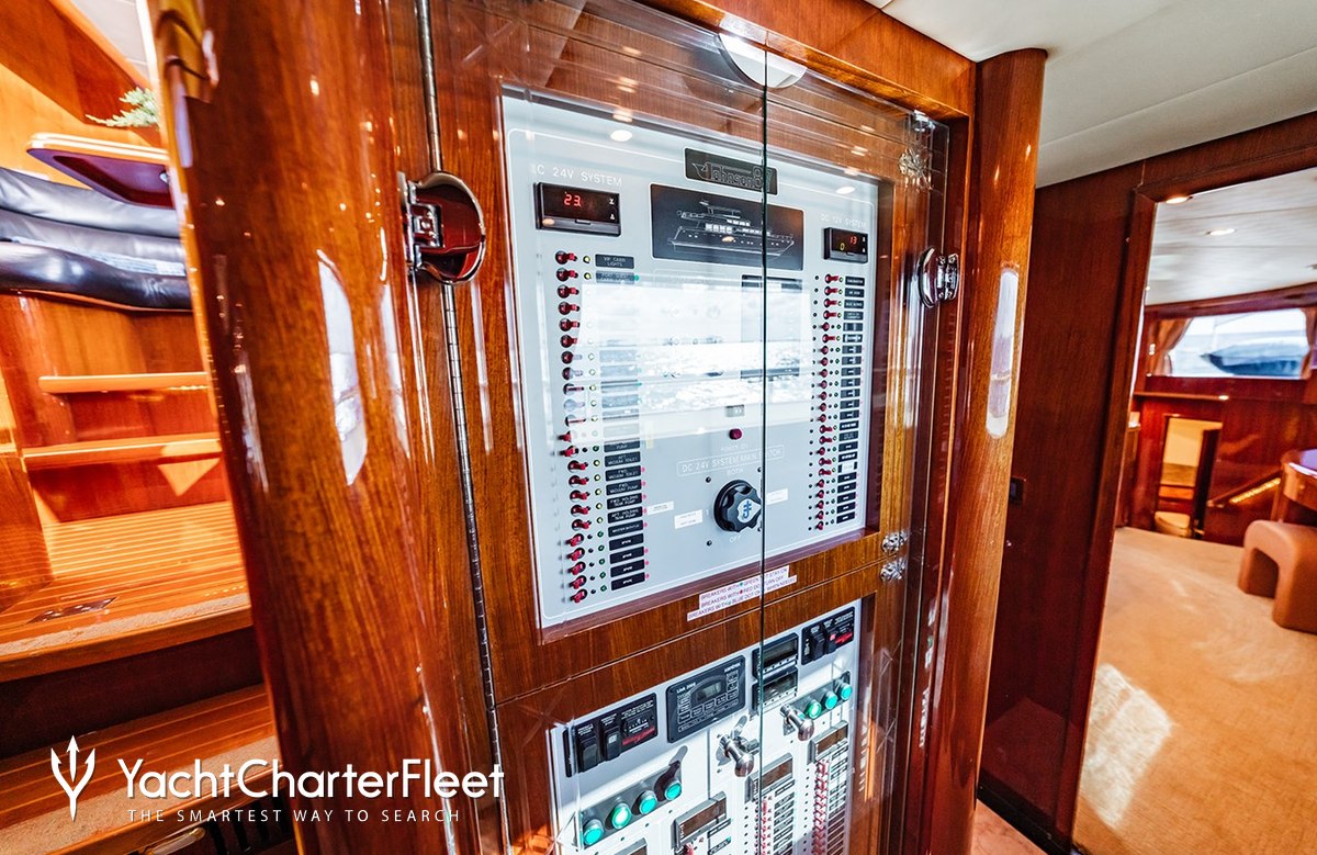Whatever your activities on your charter, you'll find some impressive features are seamlessly integrated to help you, notably Wi-Fi connectivity, allowing you to stay connected at all times, should you wish. You can stay comfortable on board whatever the weather, with air conditioning during your charter.
