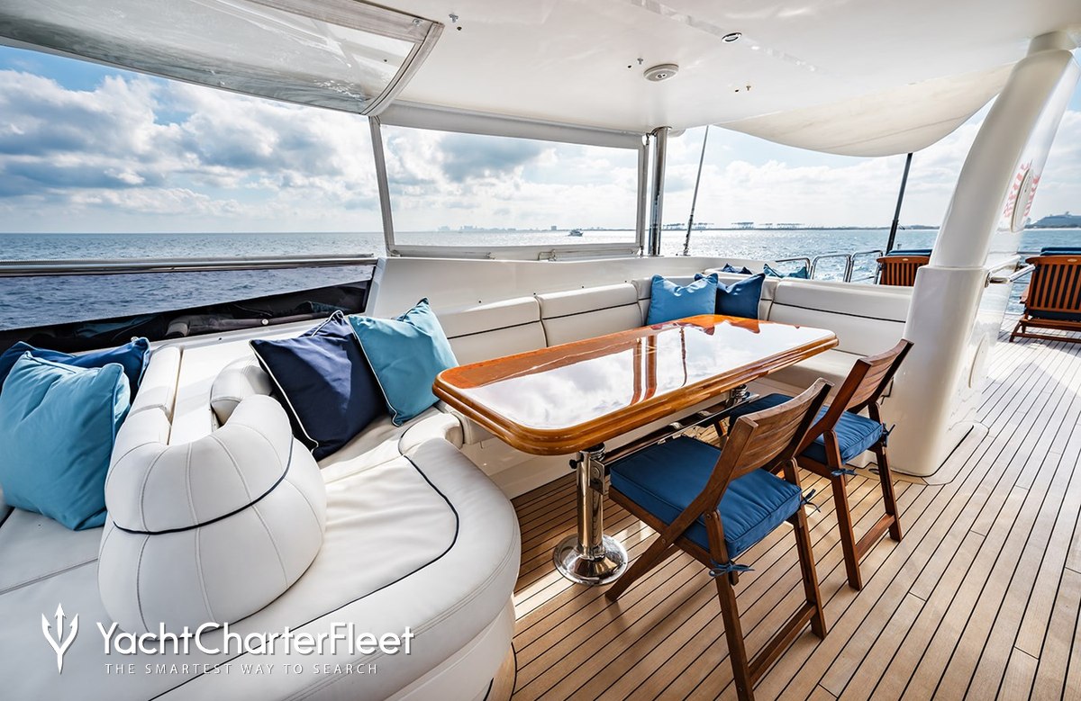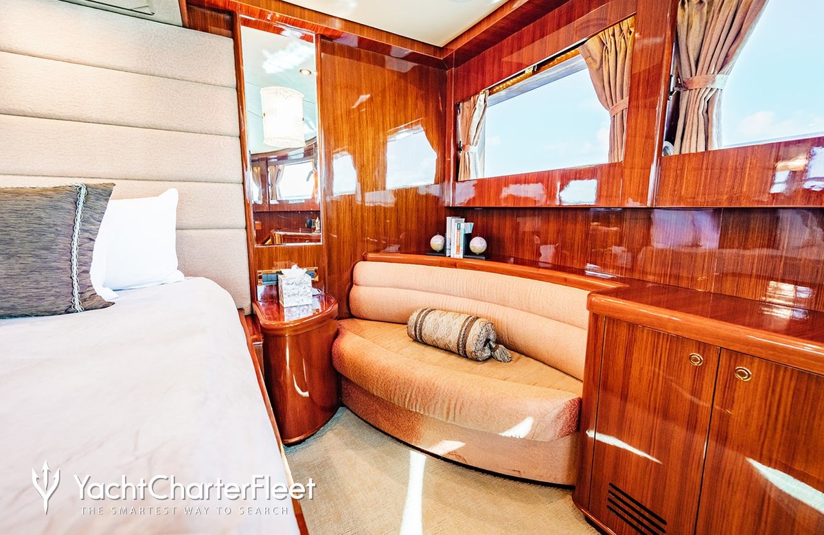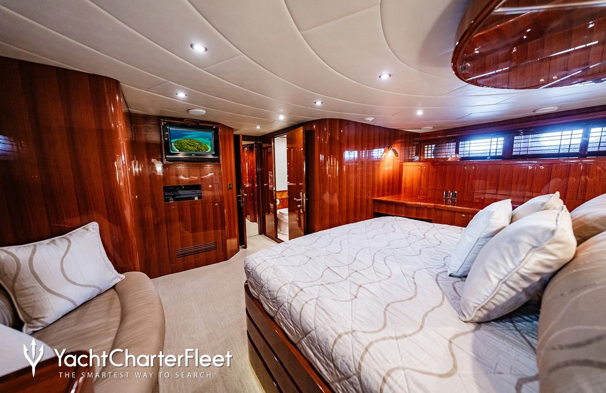 Built in 2006, Rhapsody offers guest accommodation for up to 8 guests in 4 suites comprising a master suite located on the main deck, one VIP cabin, one double cabin and one twin cabin. She is also capable of carrying up to 4 crew onboard to ensure a relaxed luxury yacht charter experience.