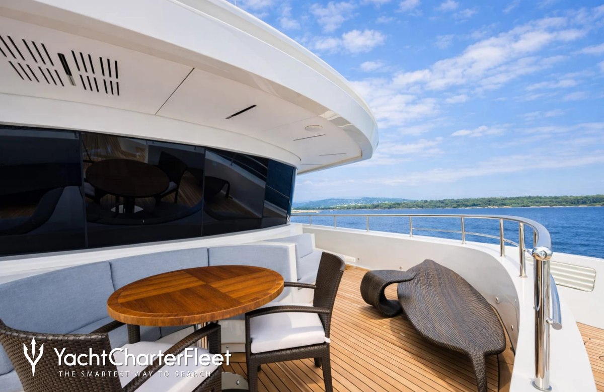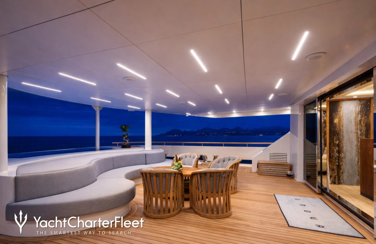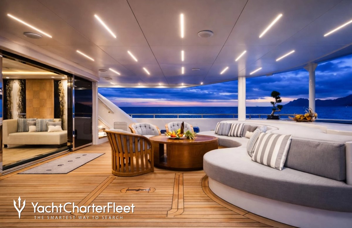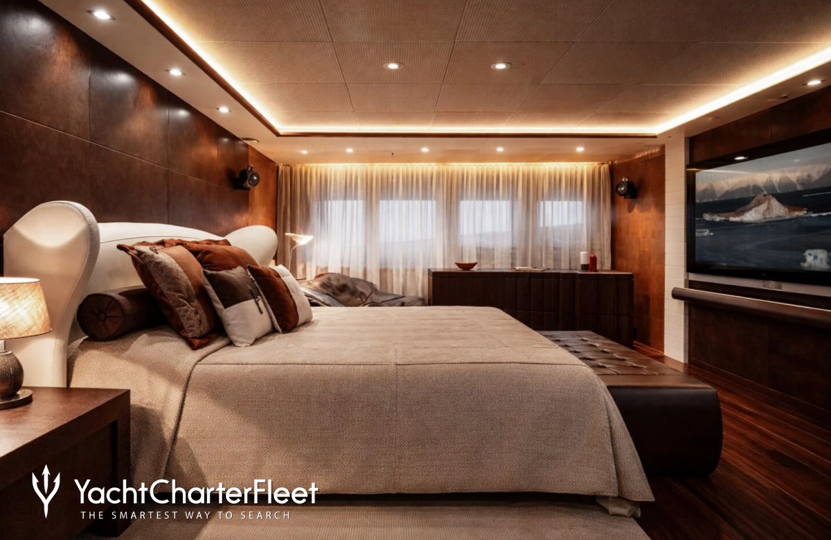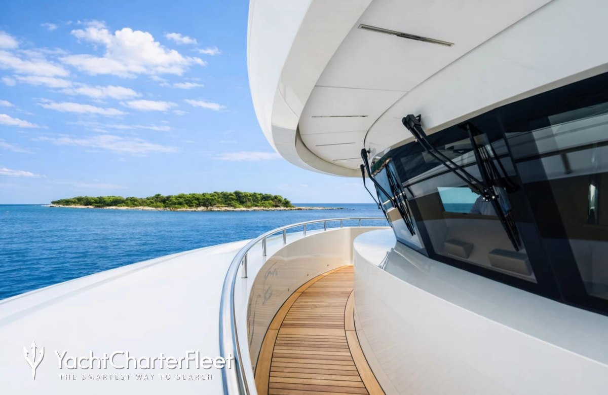 Built in 2013, I Nova offers guest accommodation for up to 12 guests in 6 suites comprising a master suite, one VIP cabin, two double cabins and two twin cabins. The supremely spacious full beam master suite incorporates its own study. She is also capable of carrying up to 12 crew onboard to ensure a relaxed luxury yacht charter experience.