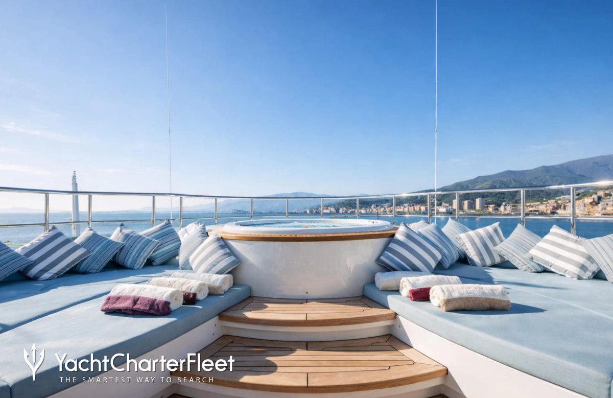On your charter, you'll find plenty to keep you busy and entertained such as a sauna to help you detox and regenerate. You can visit the well-equipped gym so that you can keep up with your fitness routine at sea or retreat to the deck jacuzzi and soak up the scenery.