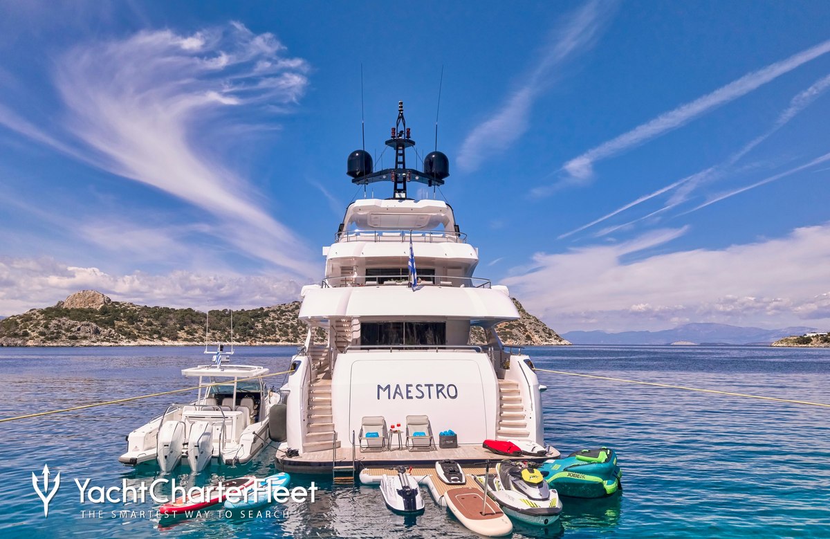 Showcasing meticulous craftsmanship coupled with high-end luxurious finishes, motor yacht Maestro certainly has the "wow" factor, along with state-of-the-art amenities and array of water toys, promising truly unforgettable yacht charters for even the most discerning guests.
