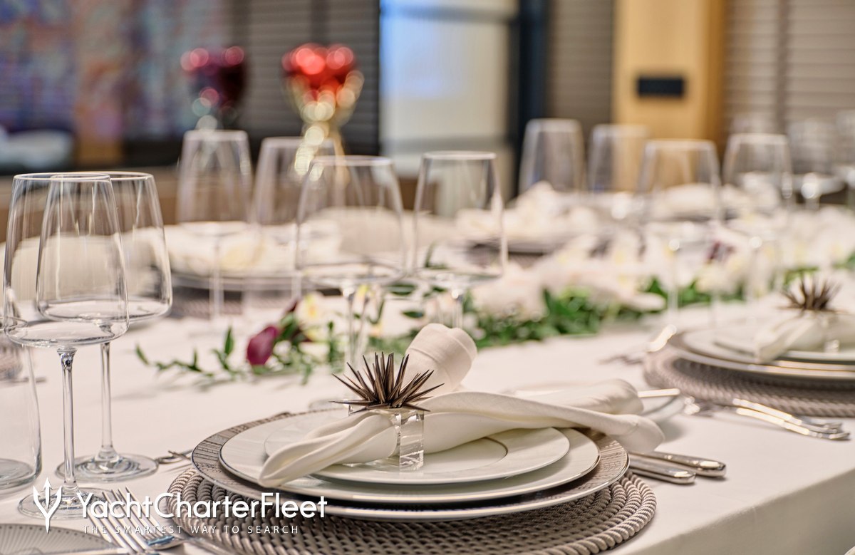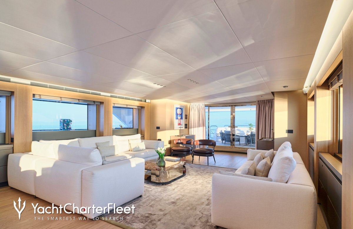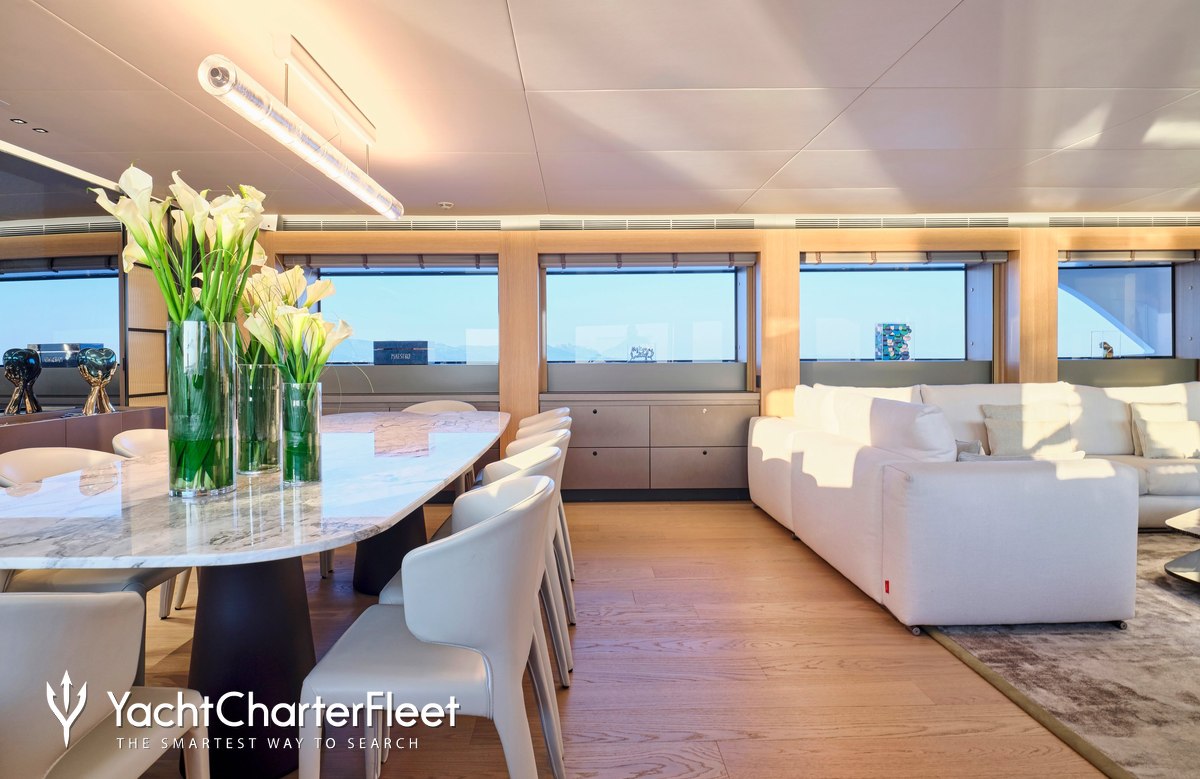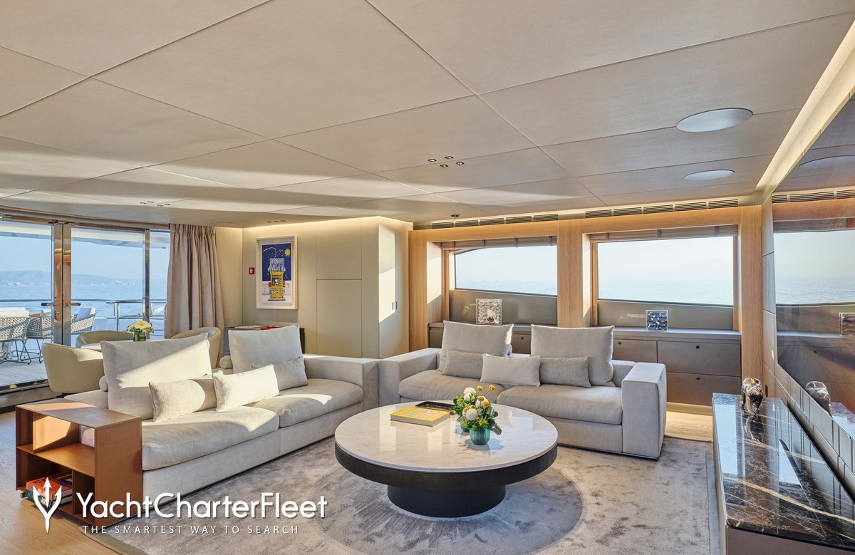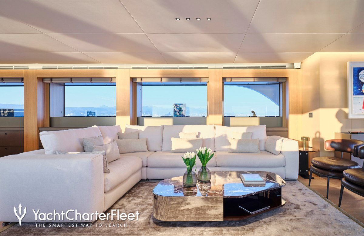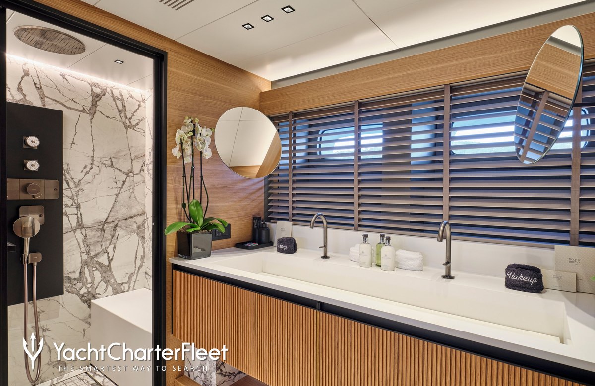 Whatever your activities on your charter, you'll find some impressive features are seamlessly integrated to help you including satellite communications, keeping you connected on any voyage. With Wi-Fi connectivity you don't have to lose contact with the outside world, unless you want to and in addition guests will experience complete comfort while chartering thanks to air conditioning.