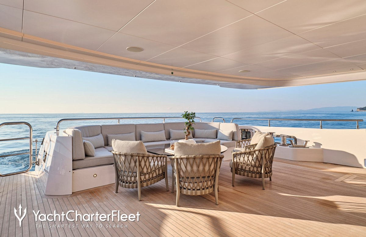 Built in 2013, Maestro offers beautifully proportioned decks for exquisite indoor/outdoor living during a luxury yacht charter. She is equipped with beach club and gym.