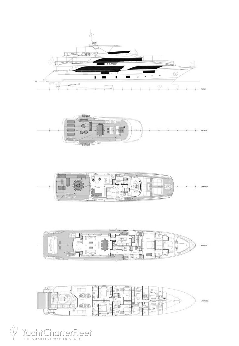 Built in 2012, Patience offers guest accommodation for up to 10 guests in 5 suites comprising a master suite located on the main deck, three double cabins and one twin cabin. The supremely spacious full beam master suite incorporates its own study and dressing room. She is also capable of carrying up to 7 crew onboard to ensure a relaxed luxury yacht charter experience.