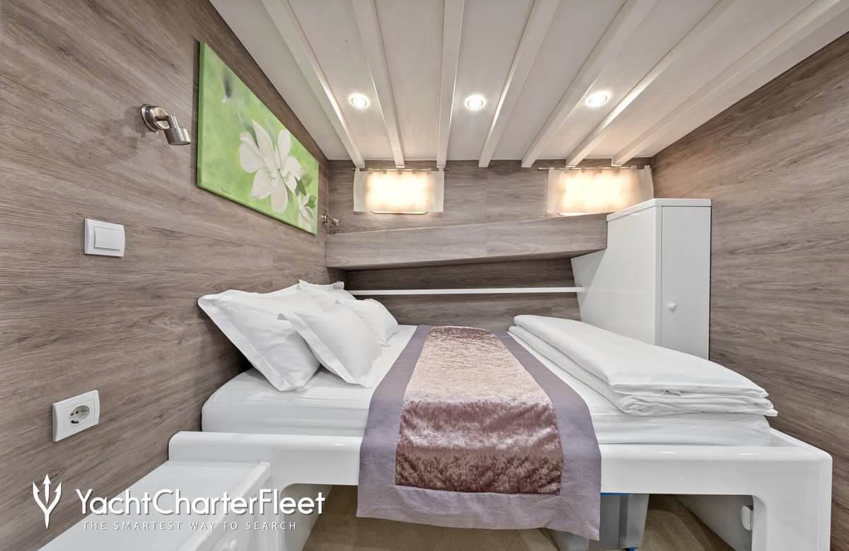 Built in 2000, Andeo offers guest accommodation for up to 10 guests in 5 suites. She is also capable of carrying up to 3 crew onboard to ensure a relaxed luxury yacht charter experience.