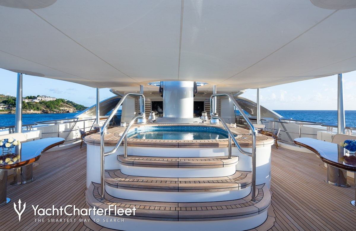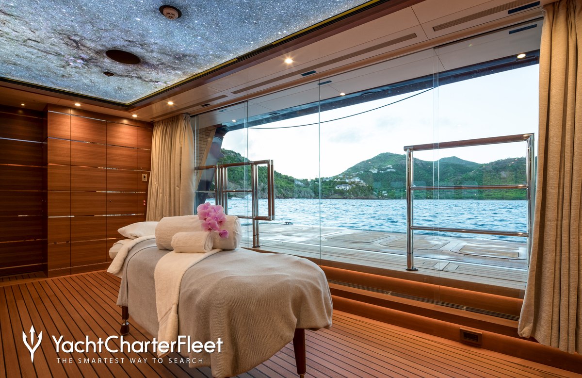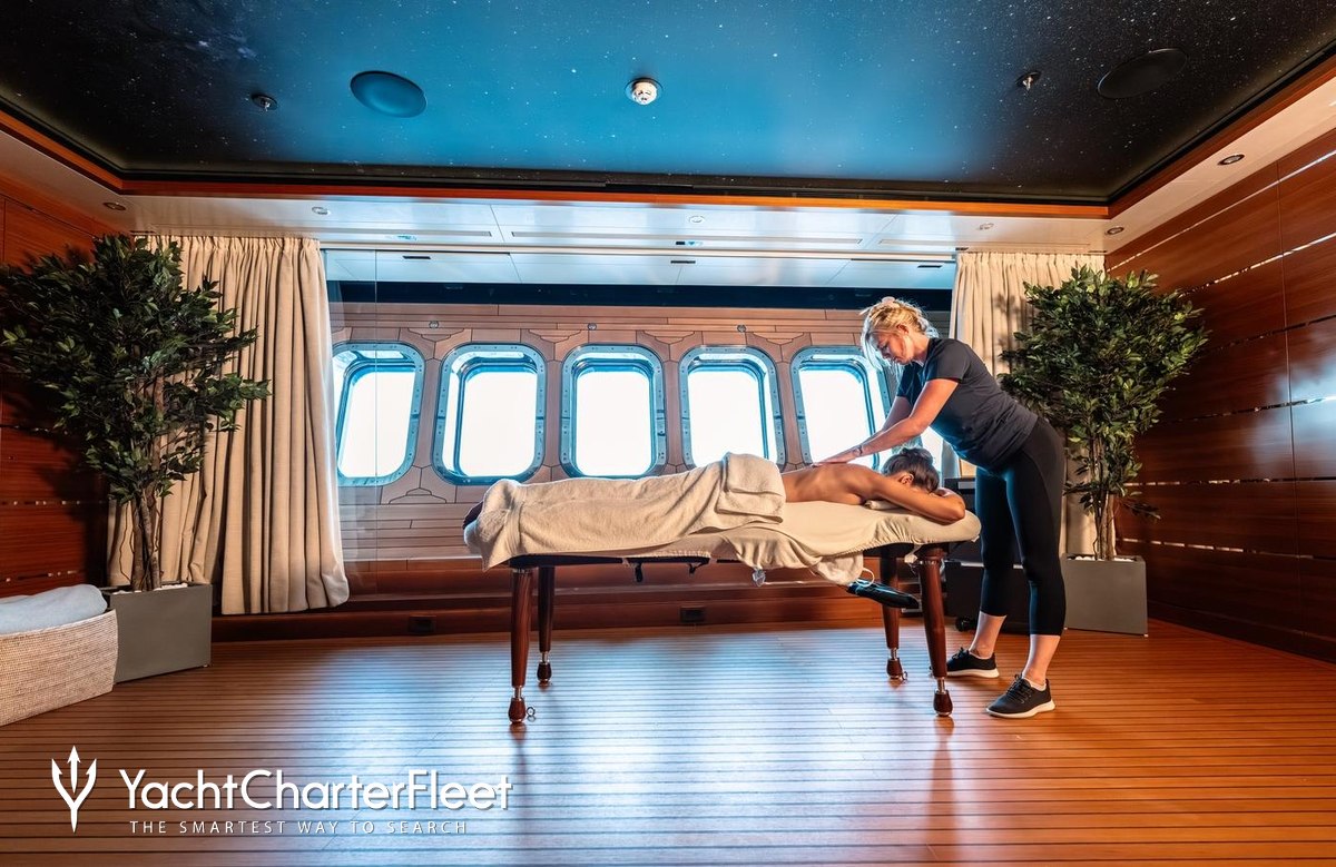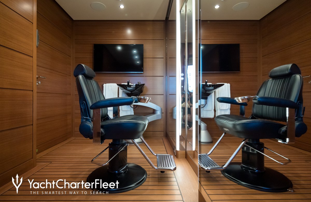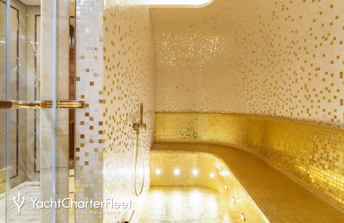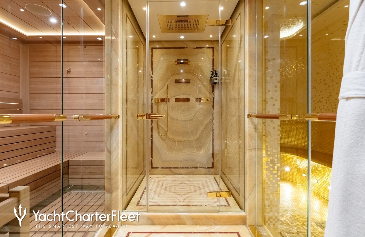 A charter on Black Pearl is comfortable and convenient thanks to the provided amenities such as a dancefloor where you and your guests can celebrate in style. Elsewhere she boasts a movie theatre, perfect to relax after a long day on the water. Visit the sauna and disconnect in peace and quiet plus take a plunge in the pool under the sun. Head to the beach club and take advantage of indoor-outdoor living and entertaining or maintain your fitness routine and work out in the well-equipped gym. Soak up the bubbles in style in the deck jacuzzi.