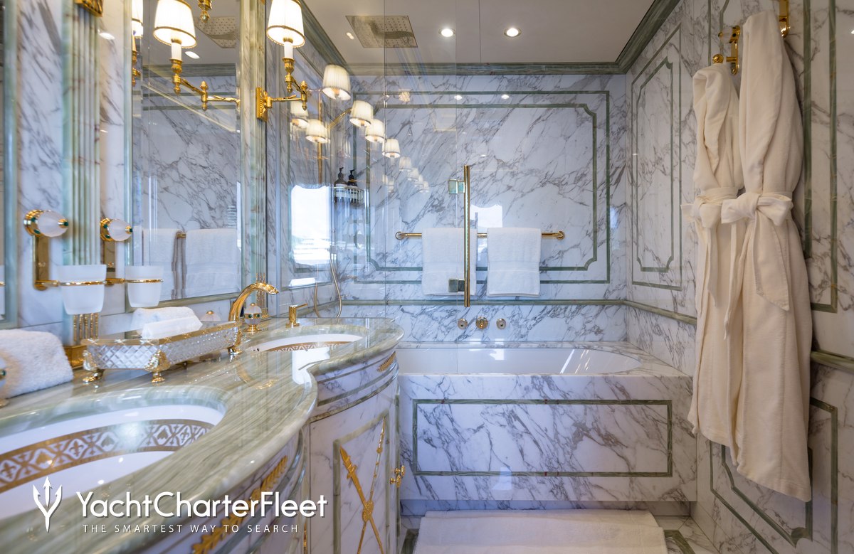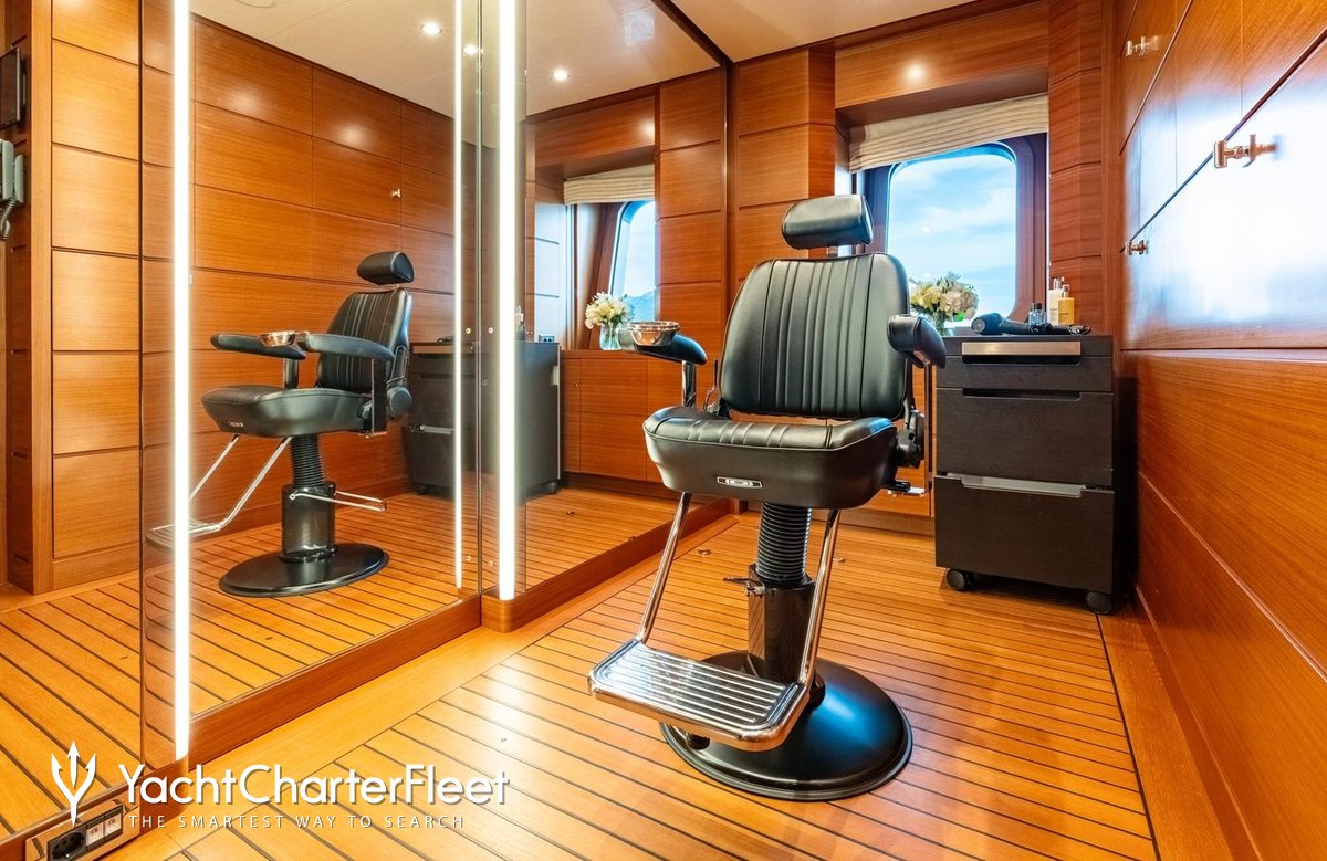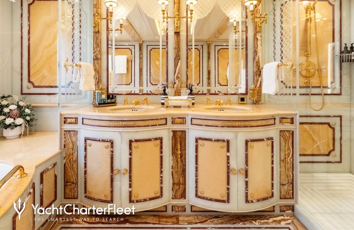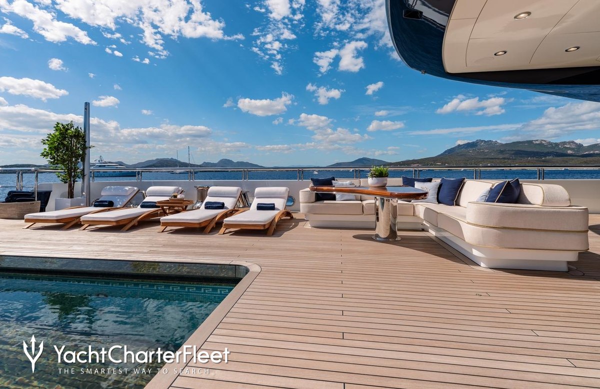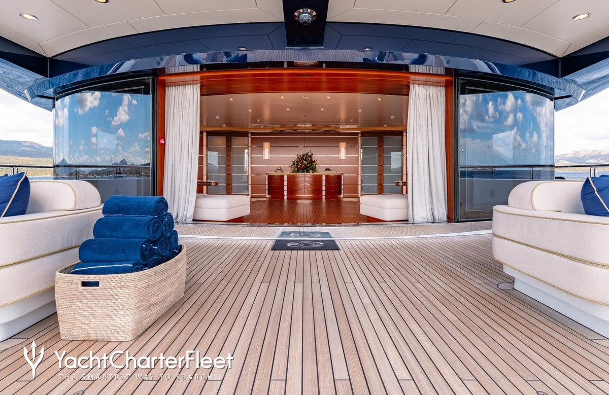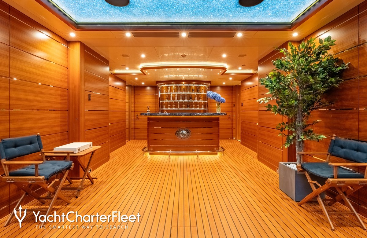 A charter on Black Pearl is comfortable and convenient thanks to the provided amenities such as a dancefloor where you and your guests can celebrate in style. Elsewhere she boasts a movie theatre, perfect to relax after a long day on the water. Visit the sauna and disconnect in peace and quiet plus take a plunge in the pool under the sun. Head to the beach club and take advantage of indoor-outdoor living and entertaining or maintain your fitness routine and work out in the well-equipped gym. Soak up the bubbles in style in the deck jacuzzi.