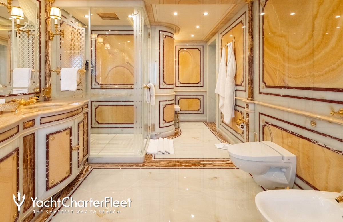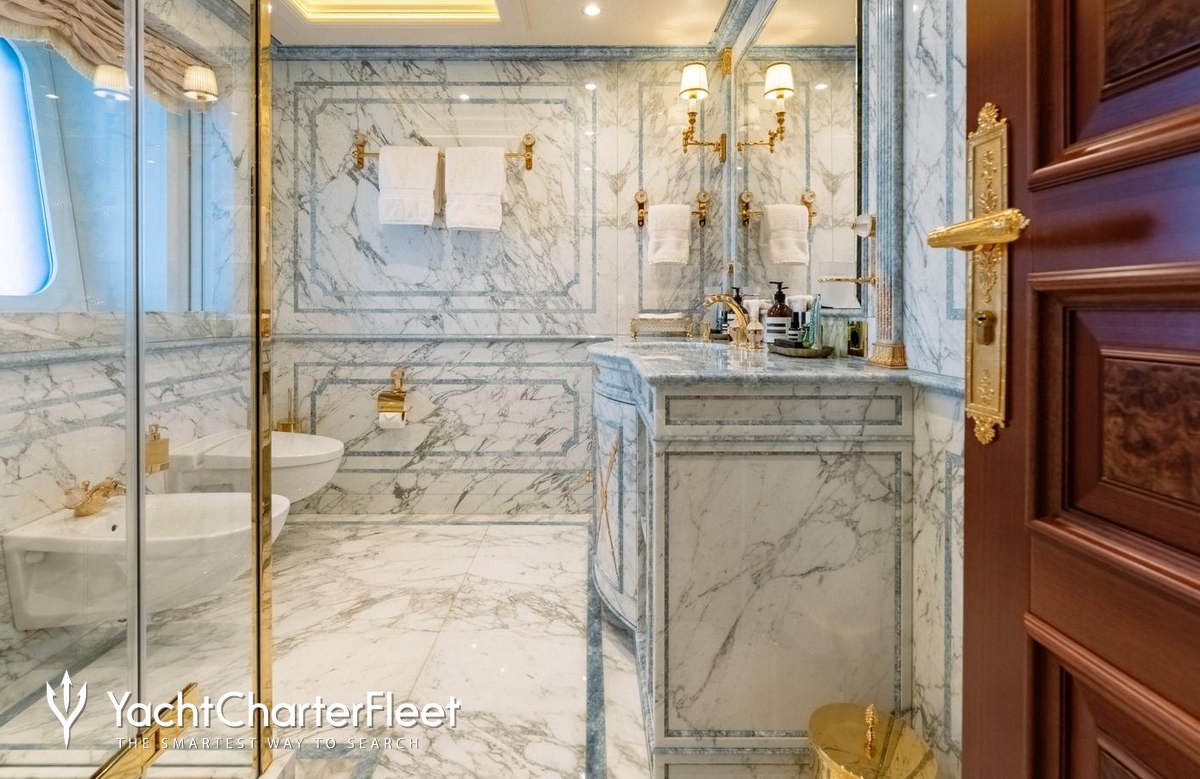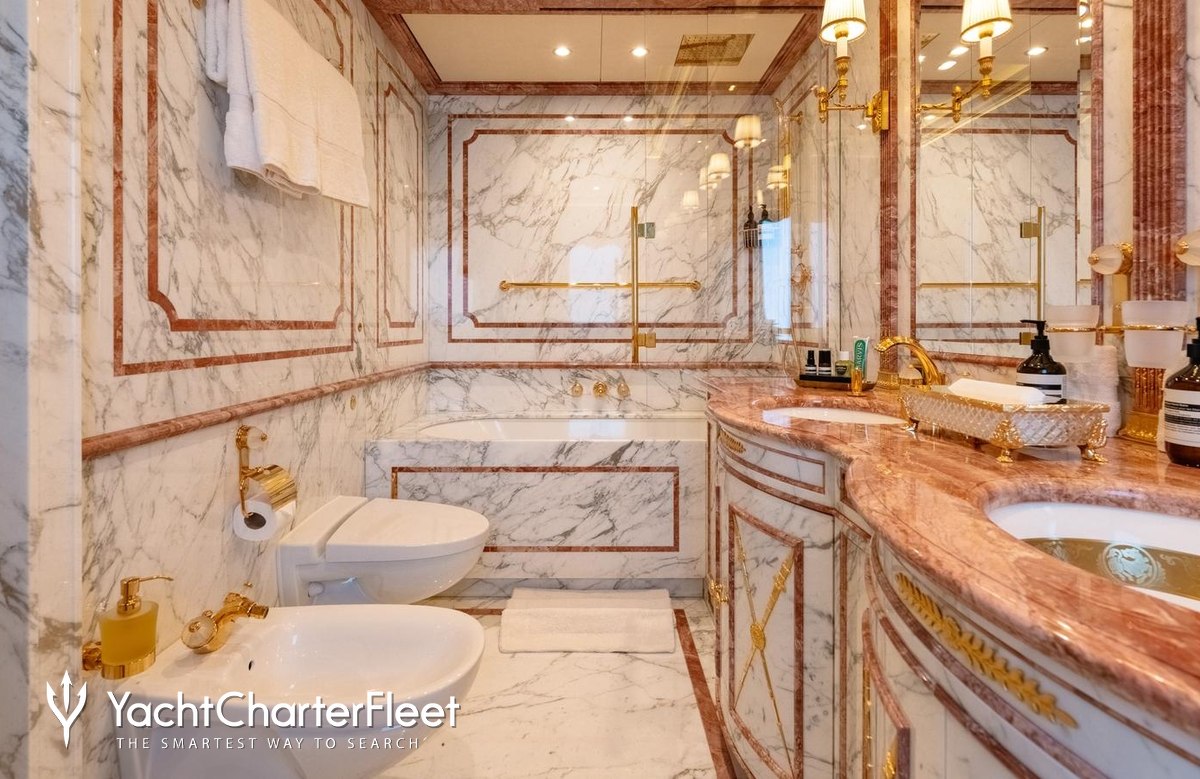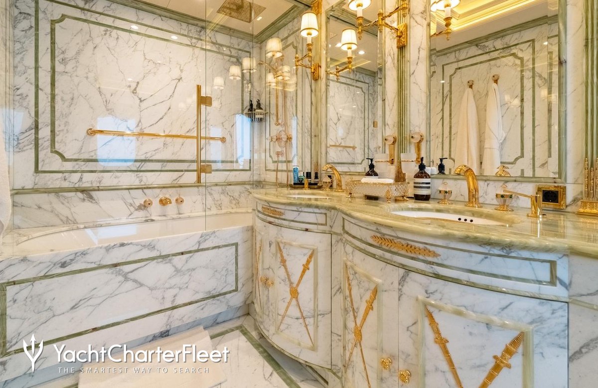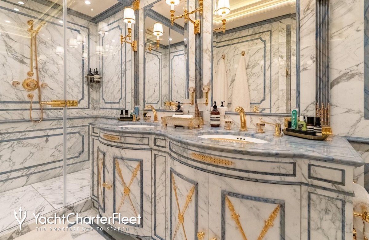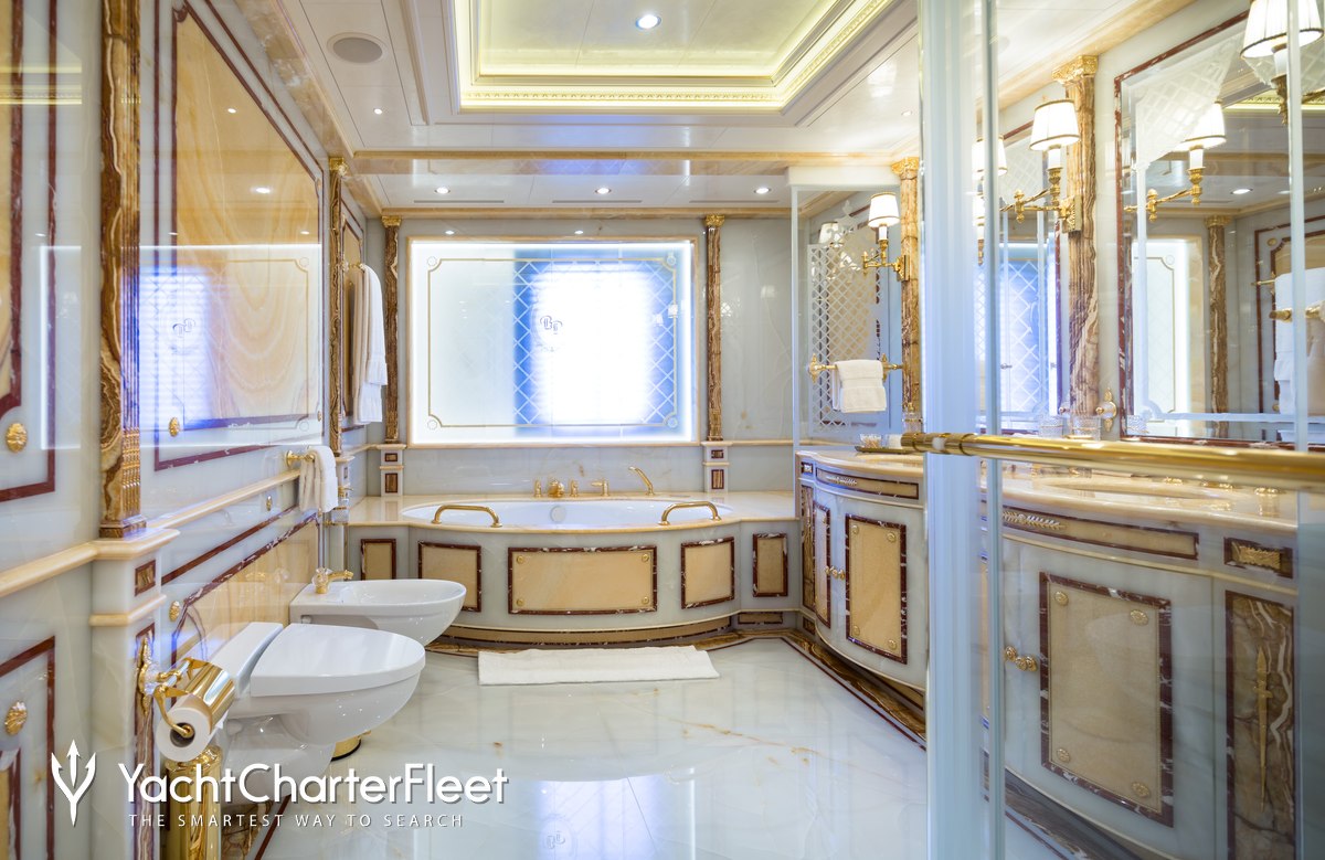 A charter on Black Pearl is comfortable and convenient thanks to the provided amenities such as a dancefloor where you and your guests can celebrate in style. Elsewhere she boasts a movie theatre, perfect to relax after a long day on the water. Visit the sauna and disconnect in peace and quiet plus take a plunge in the pool under the sun. Head to the beach club and take advantage of indoor-outdoor living and entertaining or maintain your fitness routine and work out in the well-equipped gym. Soak up the bubbles in style in the deck jacuzzi.