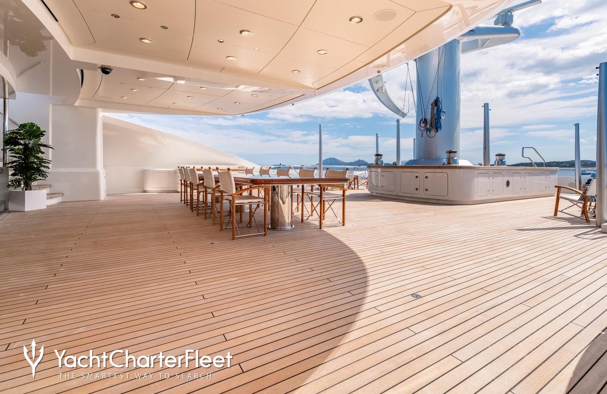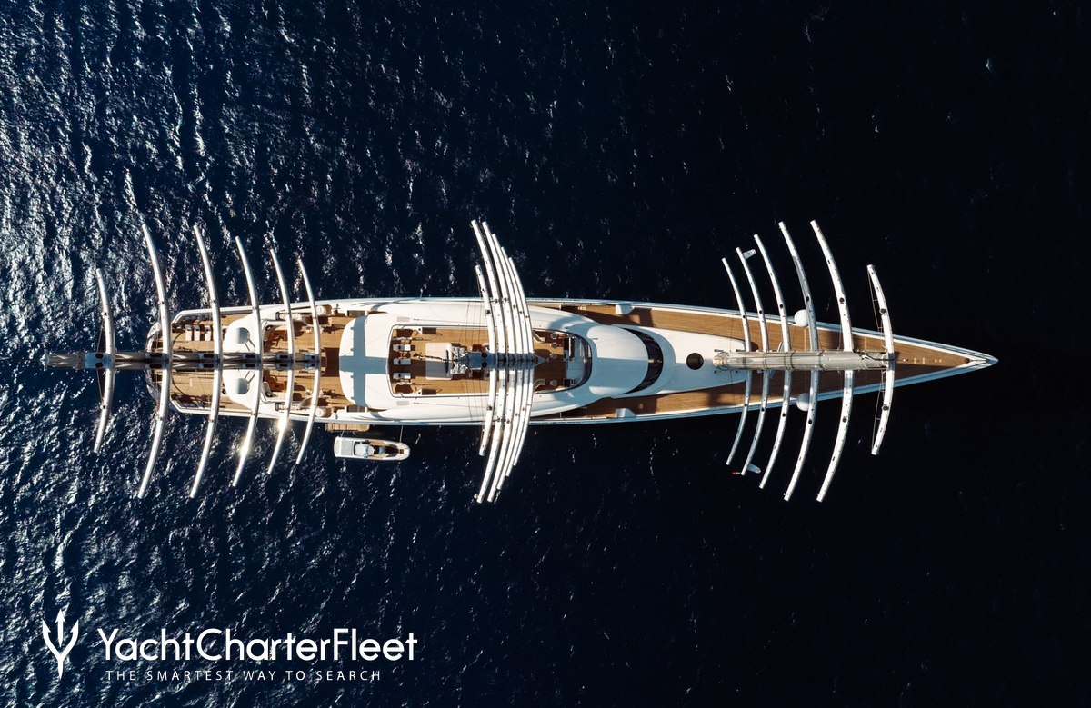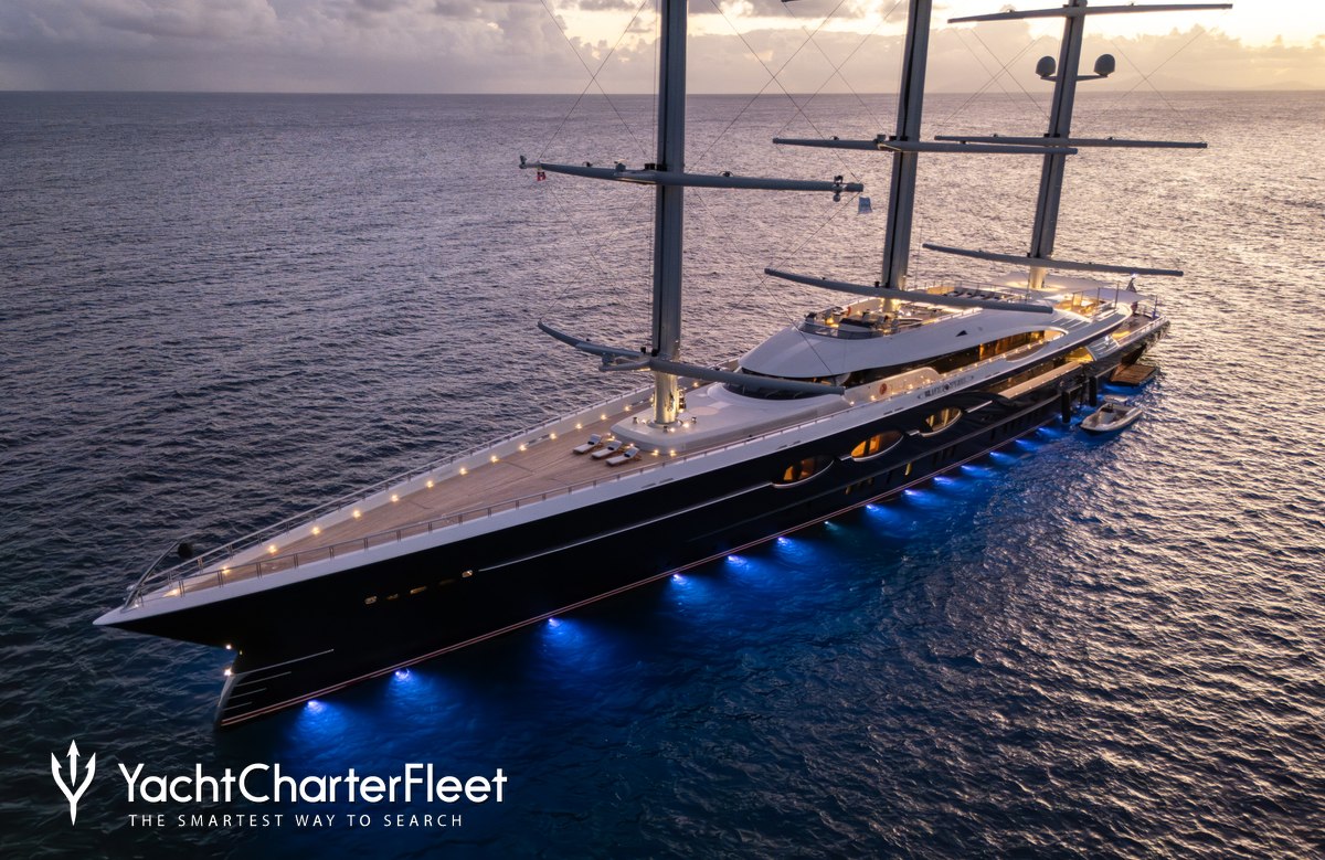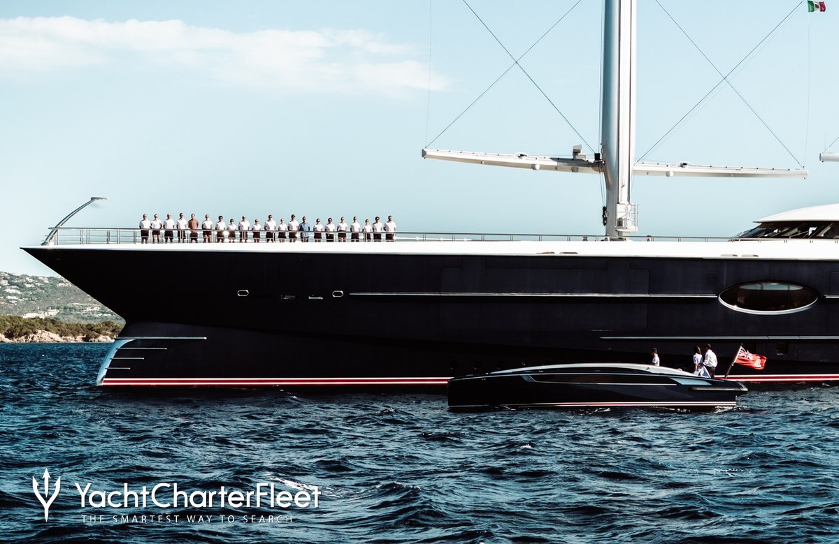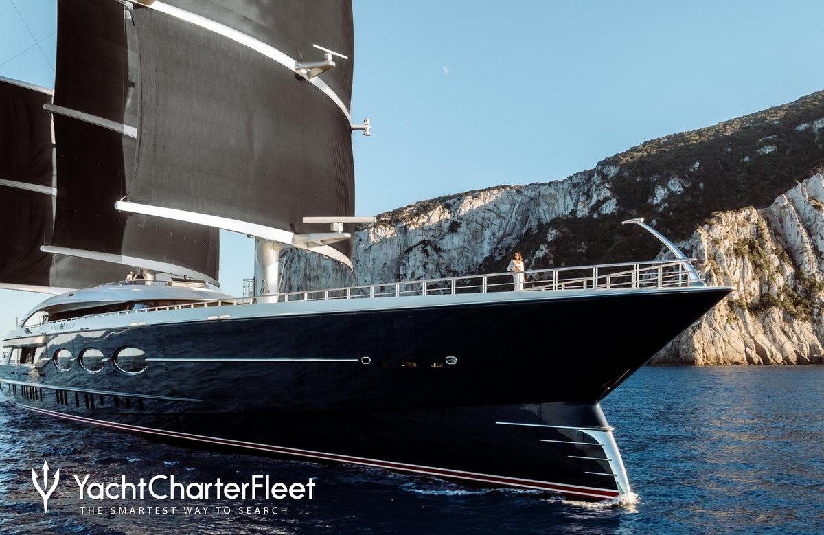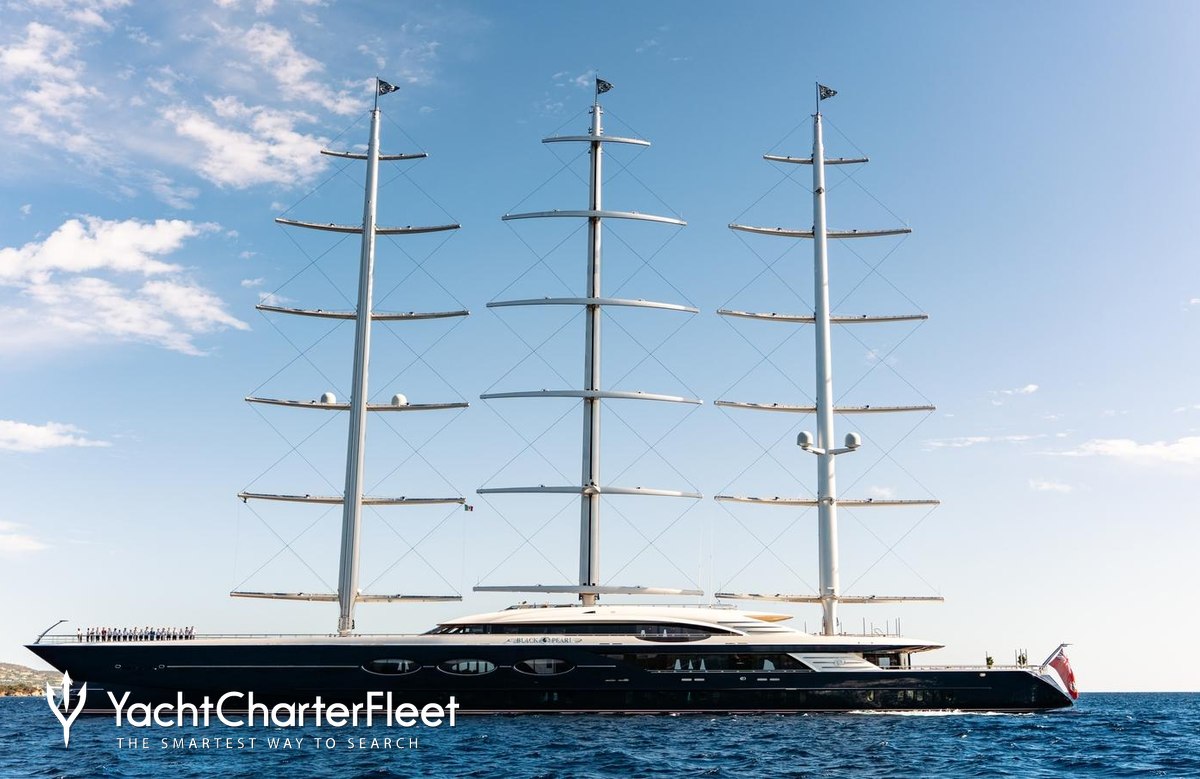 The 106.7m/350'1" 'Black Pearl' sail yacht built by the Dutch shipyard Oceanco is available for charter for up to 12 guests in 7 cabins. This multi-award winning yacht features interior styling by Italian designer Nuvolari Lenard.