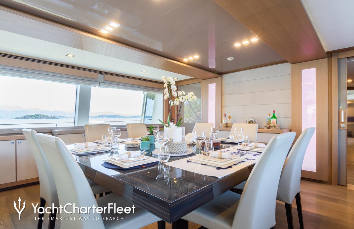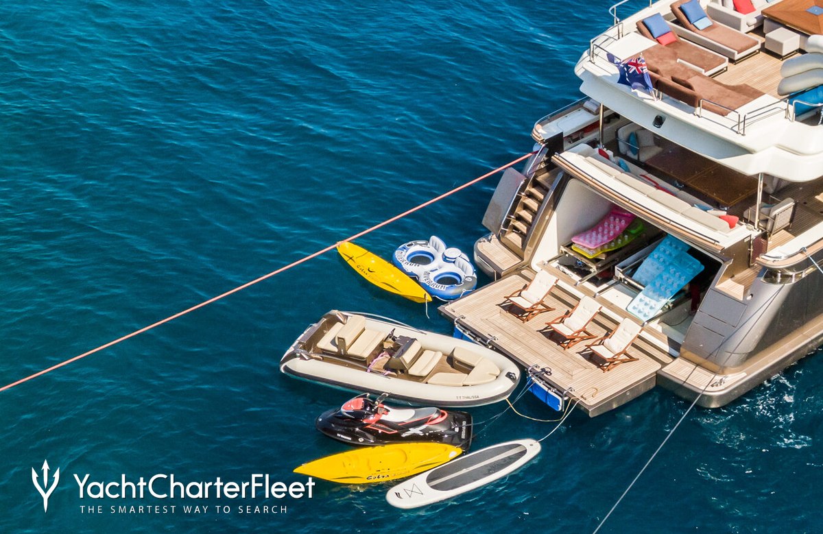 Motor yacht Thalyssa boasts a wealth of convivial spaces, perfect for luxury yacht charters with families of friends, offering ample opportunities to kick back and relax, or enjoy the water on the yacht's array of water toys, the choice is yours.