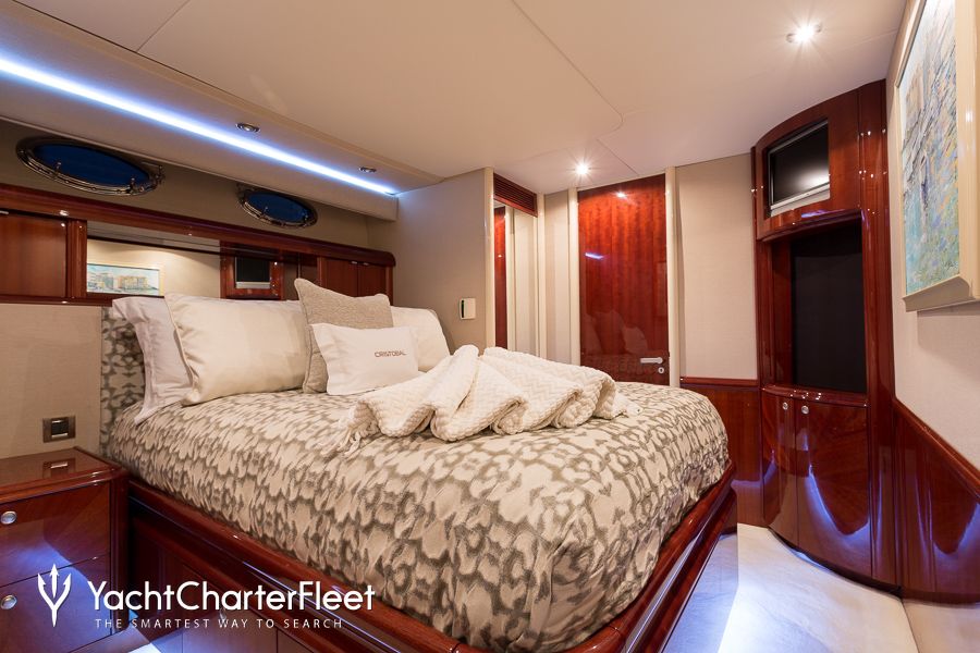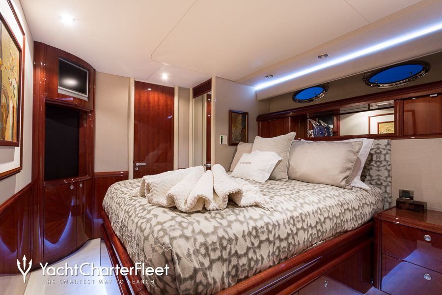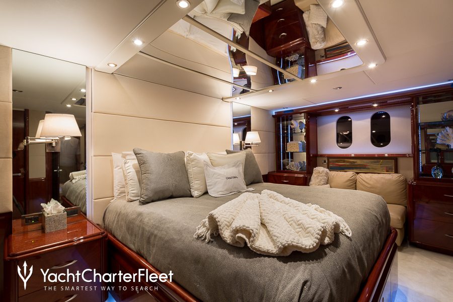 Helios offers guest accommodation for up to 6 guests in 3 suites comprising a master suite and two double cabins. There are 6 beds in total, including 1 king, 2 queen and 2 doubles. She is also capable of carrying up to 3 crew onboard to ensure a relaxed luxury yacht charter experience.