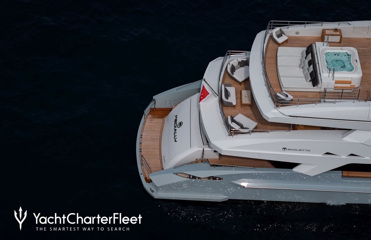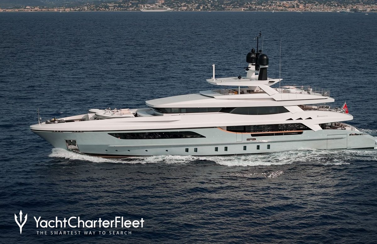 The 46.3m/151'11" 'PI' motor yacht built by the Italian shipyard Baglietto is available for charter for up to 10 guests in 5 cabins. This yacht features interior styling by Italian designer Francesco Paszkowski Design.