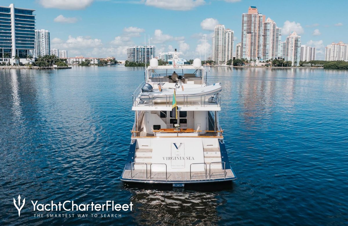 The 28.2m/92'6" 'Virginia Sea' motor yacht built by the American shipyard Marlow is available for charter for up to 8 guests in 4 cabins. This yacht features interior styling by American designer Marlow.