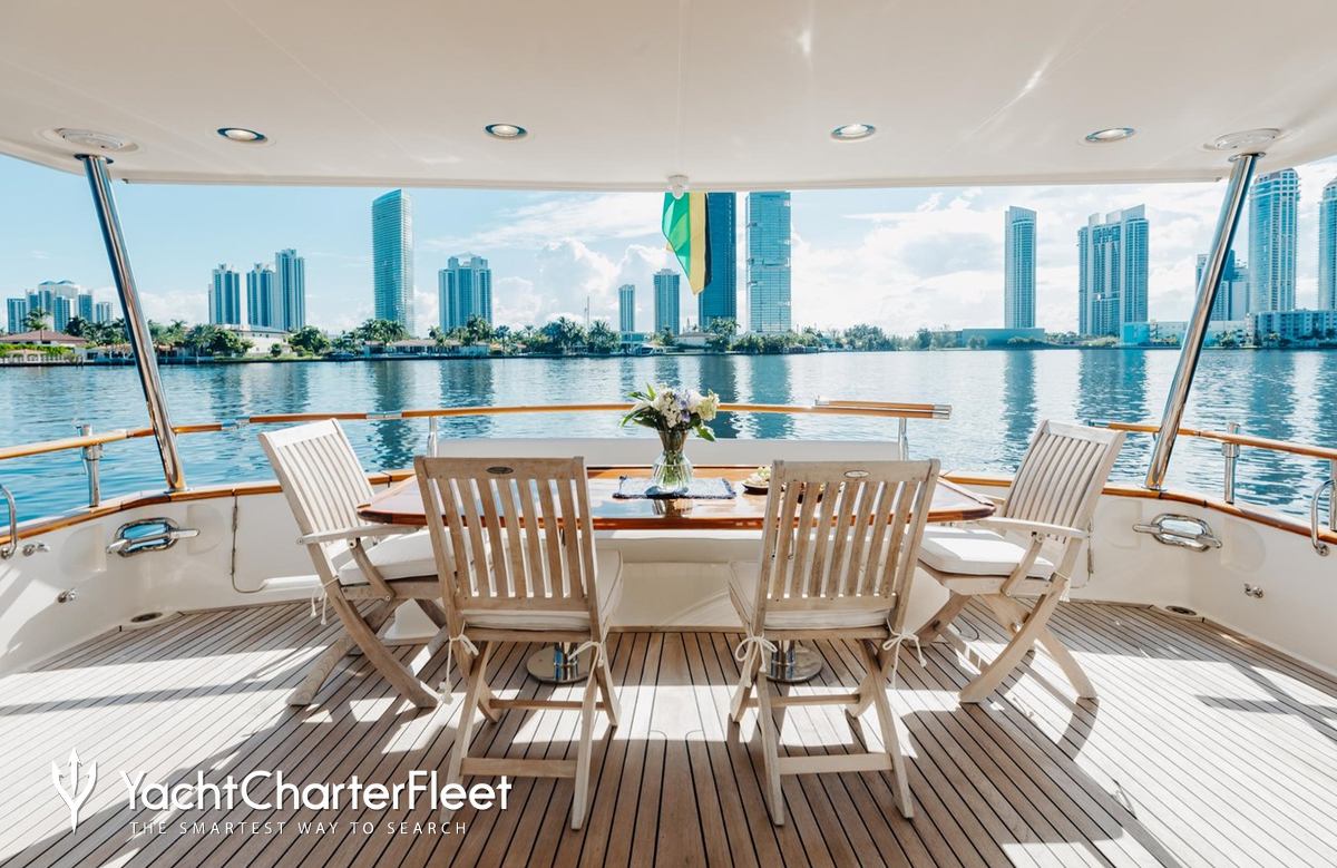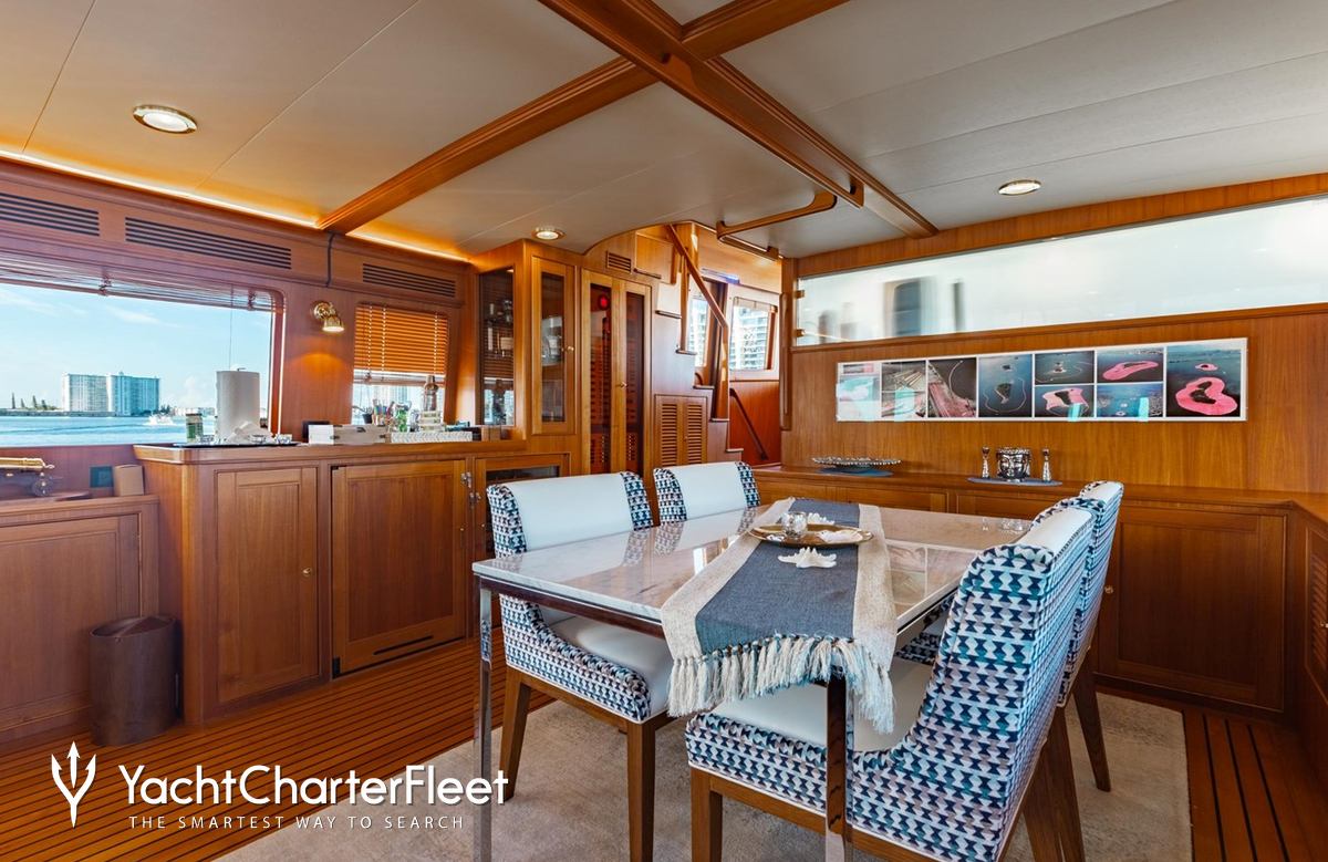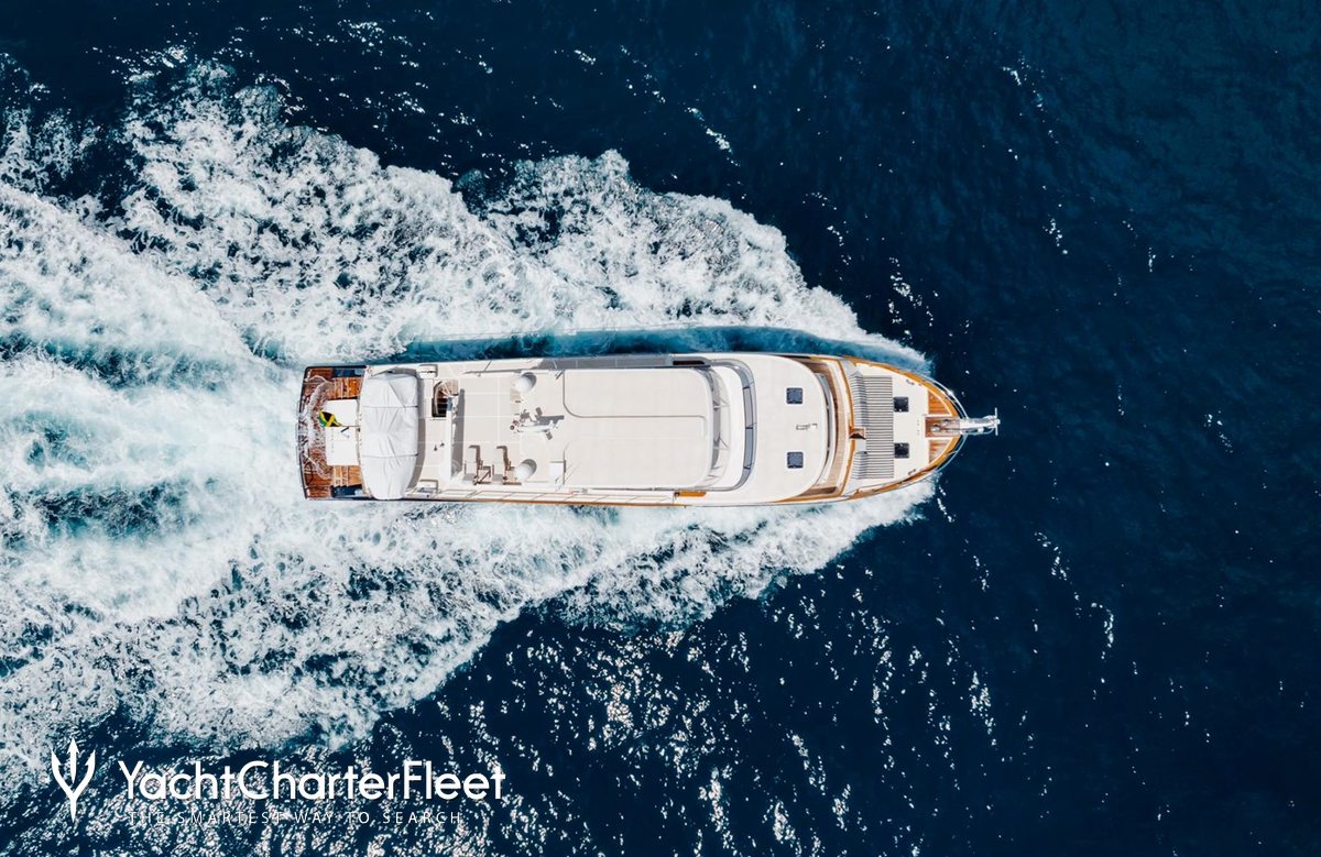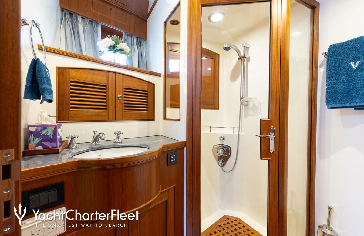 Virginia Sea is great for families thanks to her child-friendly setup. She offers guest accommodation for up to 8 guests with a layout comprising a master suite, one VIP cabin and two twin cabins. There are 8 beds in total, including 2 king, 4 singles and 2 pullmans. She is also capable of carrying up to 4 crew onboard to ensure a relaxed luxury yacht charter experience.