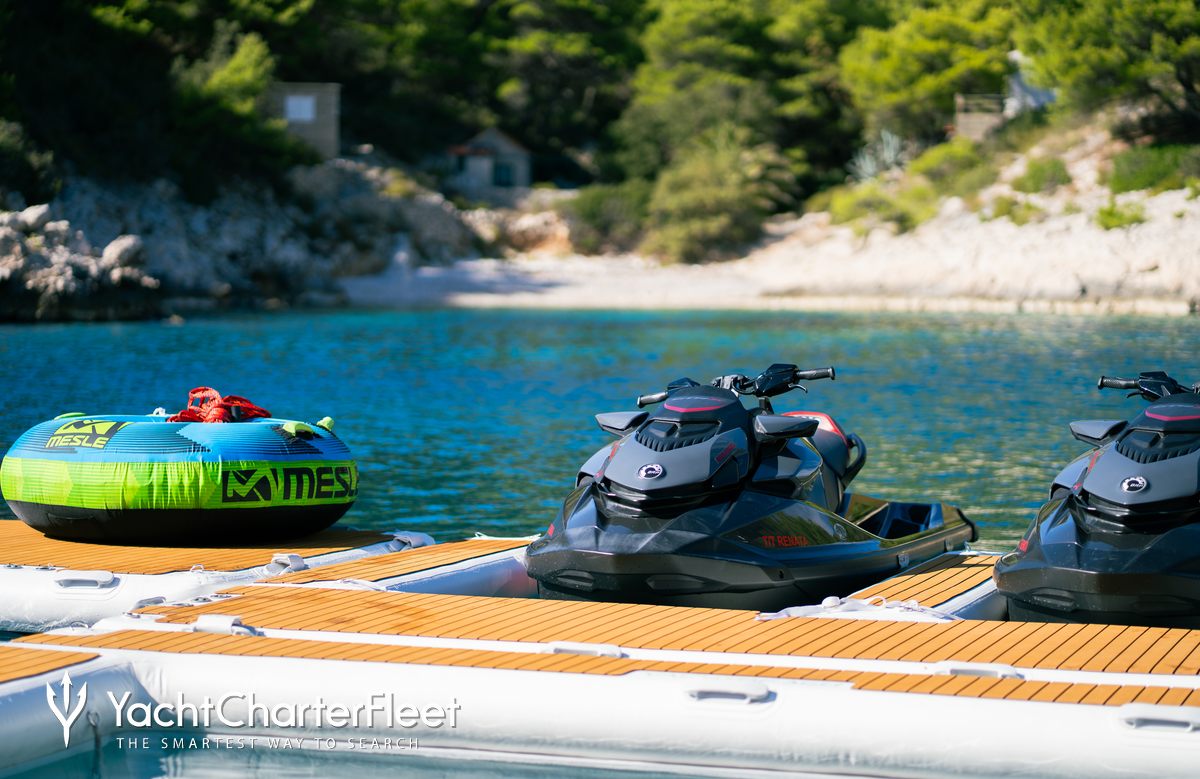 Onboard Renata has a range of toys and accessories to keep you and your guests entertained on the water throughout your stay. Take to the sea on the Jet Skis offering you power and control on the water. In addition there are waterskis that are hugely entertaining whether you are a beginner or a seasoned pro. Another excellent feature are two F5S SEABOBs, offering a truly remarkable experience that lets you skim along the surface or swim with the fishes quietly and safely. If that isn't enough Renata also features wakeboards, kayaks, paddleboards and snorkelling equipment. Renata features two tenders, but leading the pack is a 10m/32'10" Chase Tender to transport you in style.