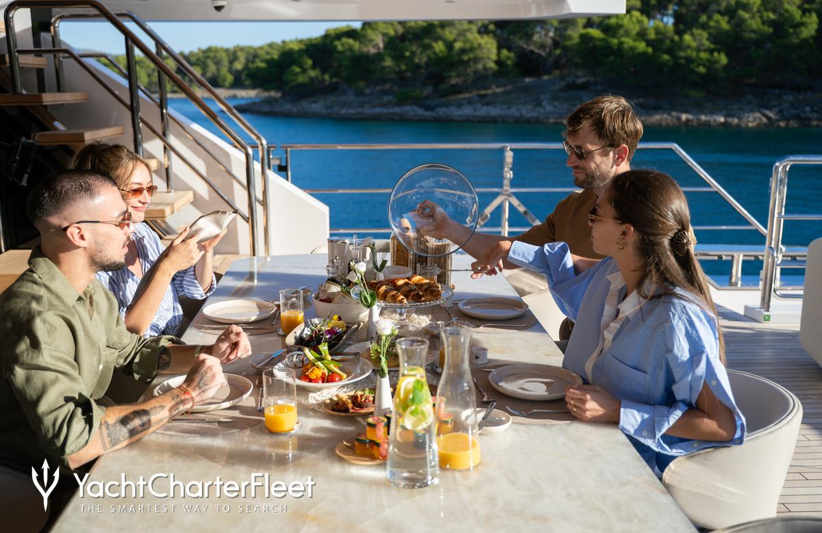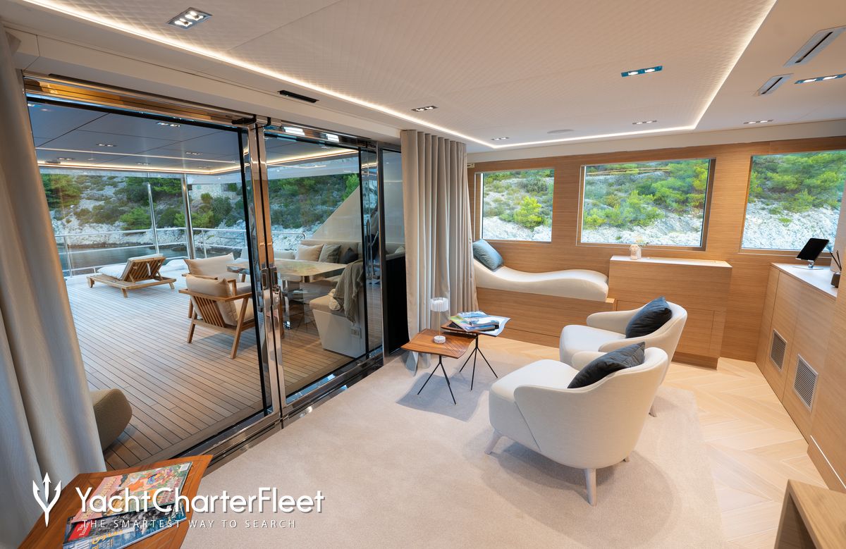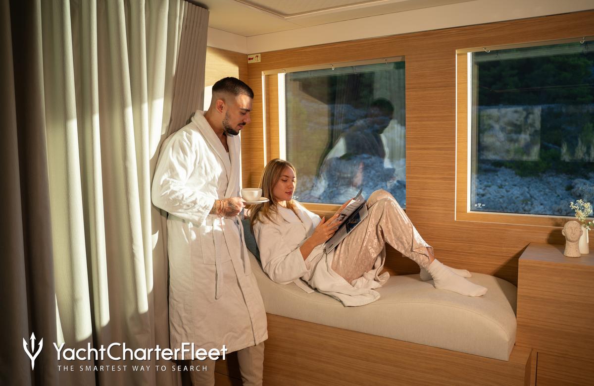 Whatever your activities on your charter, you'll find some impressive features are seamlessly integrated to help you including Wi-Fi connectivity, allowing you to stay connected at all times, should you wish. Guests will experience complete comfort while chartering thanks to air conditioning.