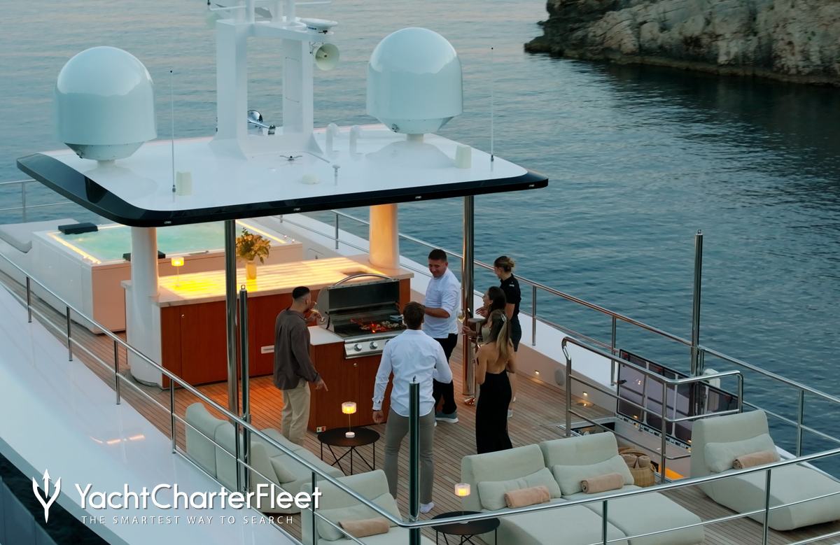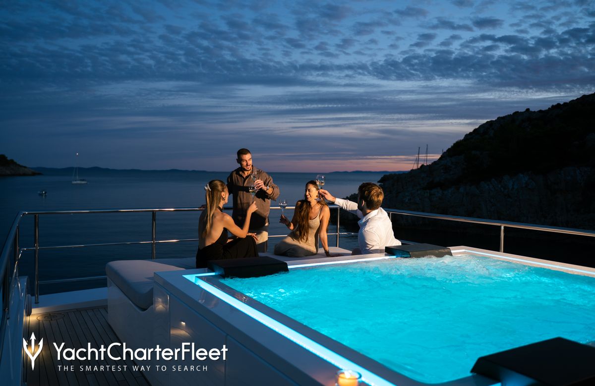 Keeping comfortable and entertained on Renata is easy thanks to the available amenities including a state-of-the-art movie theatre for movie nights. Soothe tired limbs and reinvigorate yourself in the sauna and in addition even the most discerning of charter guests will enjoy the included beach club. Soak up the bubbles in style in the deck jacuzzi.