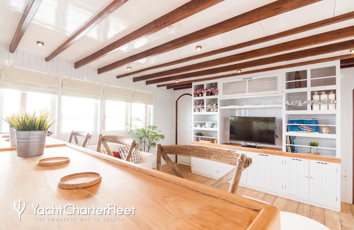 Whatever your activities on your charter, you'll find some impressive features are seamlessly integrated to help you including Wi-Fi connectivity, allowing you to stay connected at all times, should you wish. You can stay comfortable on board whatever the weather, with air conditioning during your charter.