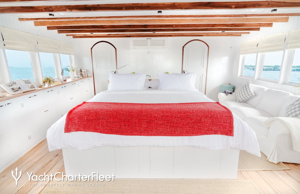 Built in 2015, Mischief offers guest accommodation for up to 8 guests in 4 suites comprising a master suite, one double cabin and one twin cabin. There are 4 beds in total, including 2 doubles and 2 singles. She is also capable of carrying up to 8 crew onboard to ensure a relaxed luxury yacht charter experience.