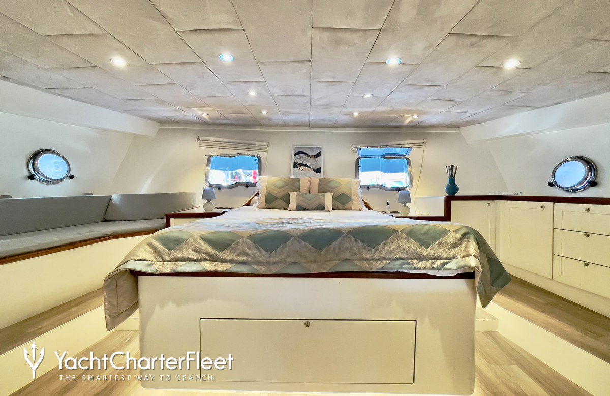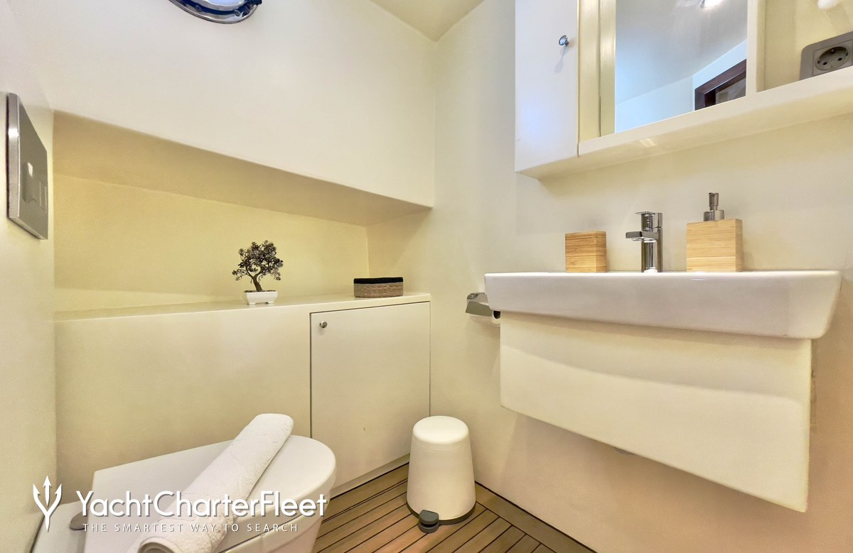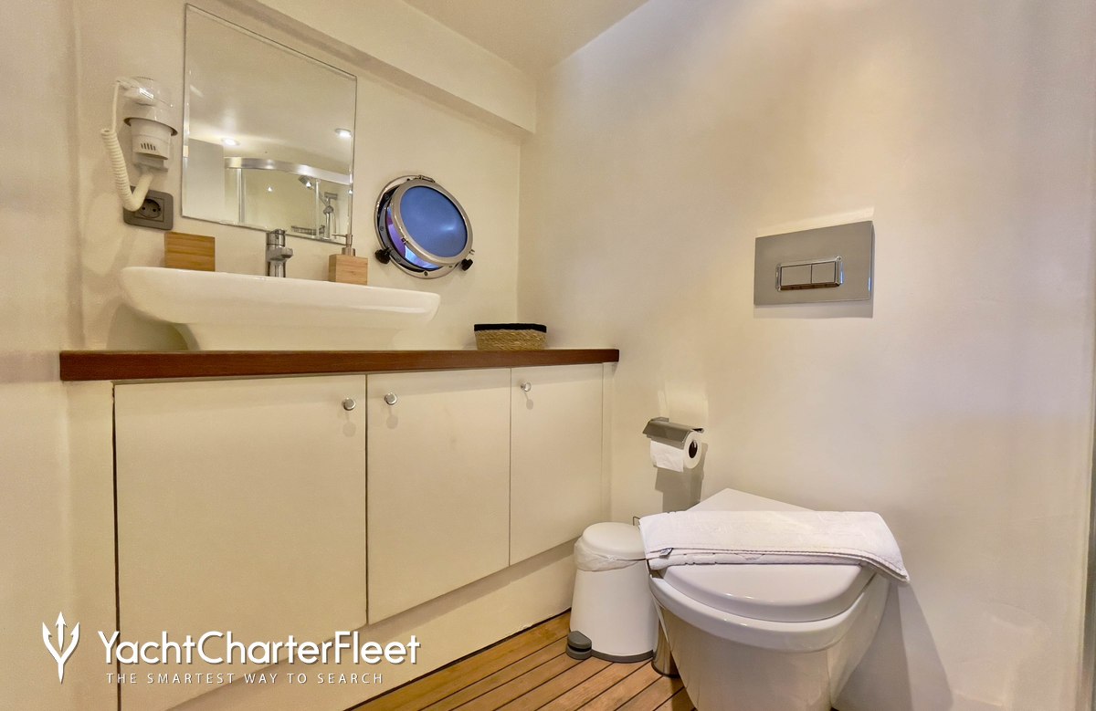 Whatever your activities on your charter, you'll find some impressive features are seamlessly integrated to help you, particularly Wi-Fi connectivity, allowing you to stay connected at all times, should you wish. You can stay comfortable on board whatever the weather, with air conditioning during your charter.