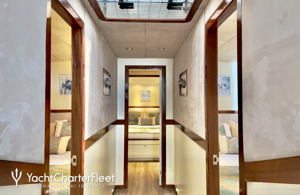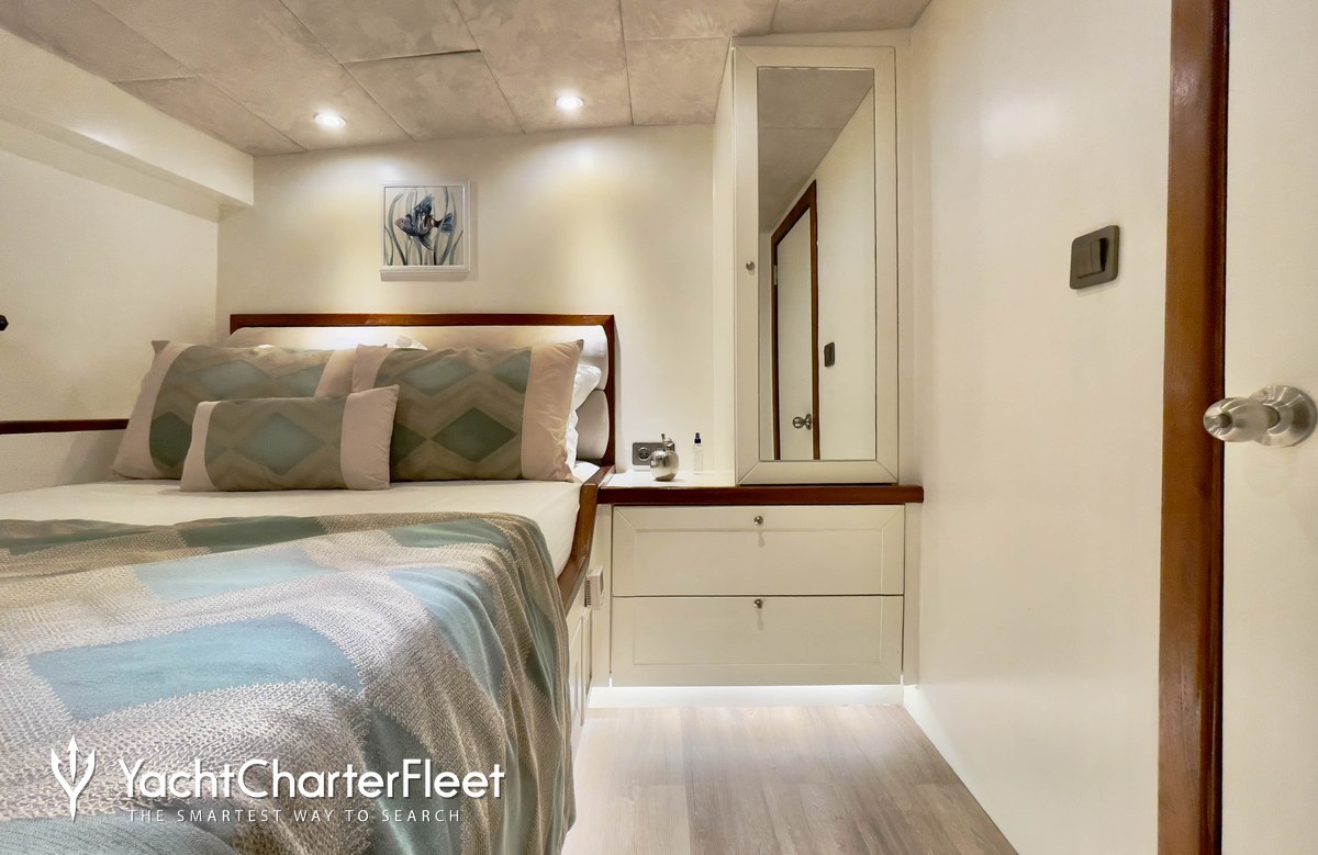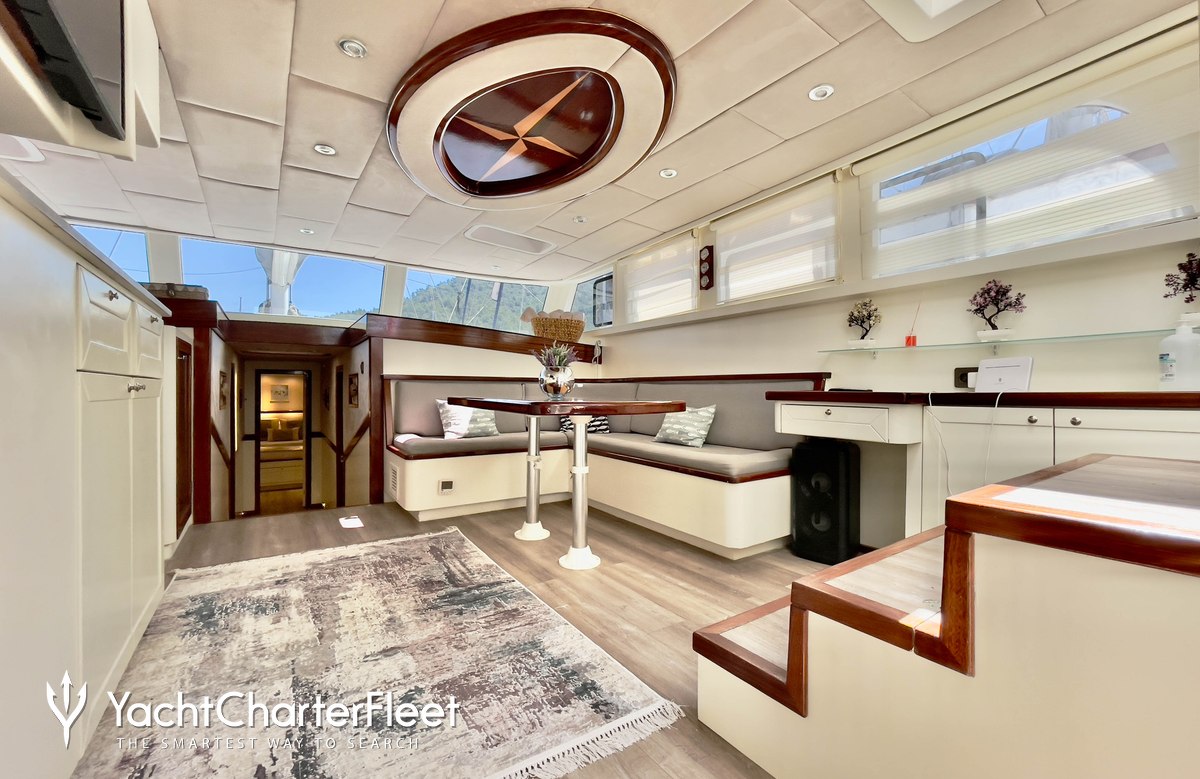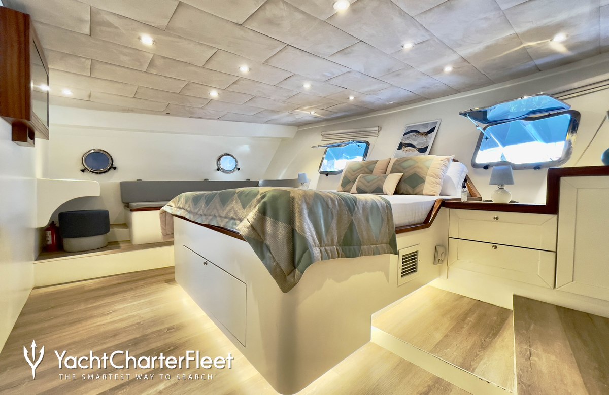 Whatever your activities on your charter, you'll find some impressive features are seamlessly integrated to help you, particularly Wi-Fi connectivity, allowing you to stay connected at all times, should you wish. You can stay comfortable on board whatever the weather, with air conditioning during your charter.
