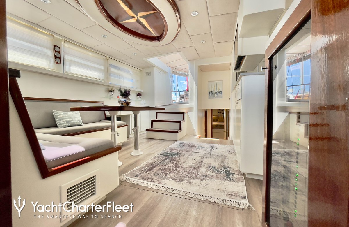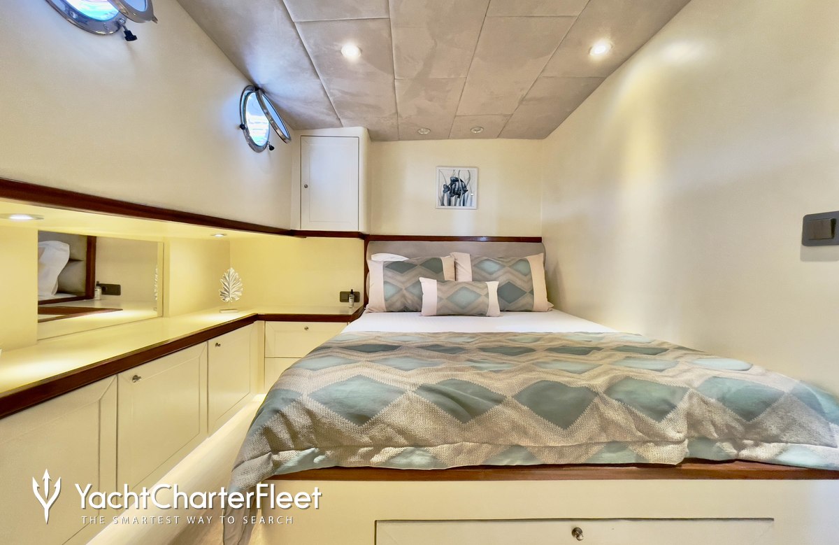 Built in 2008, Derya Deniz offers guest accommodation for up to 10 guests in 5 suites comprising a master suite, one VIP cabin and three double cabins. There are 5 beds in total, including 2 king and 3 doubles. She is also capable of carrying up to 4 crew onboard to ensure a relaxed luxury yacht charter experience.