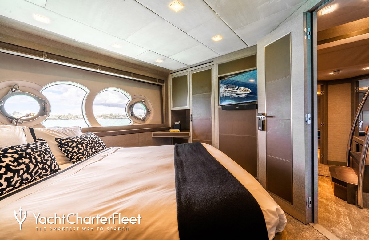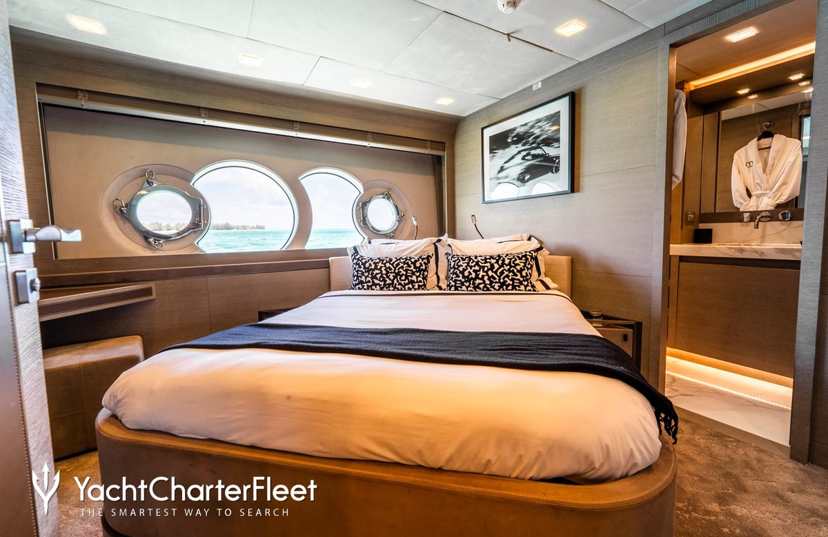 Cielo Nero offers guest accommodation for up to 10 guests in 5 suites comprising a master suite, one VIP cabin, one double cabin and two twin cabins. She is also capable of carrying up to 5 crew onboard to ensure a relaxed luxury yacht charter experience.