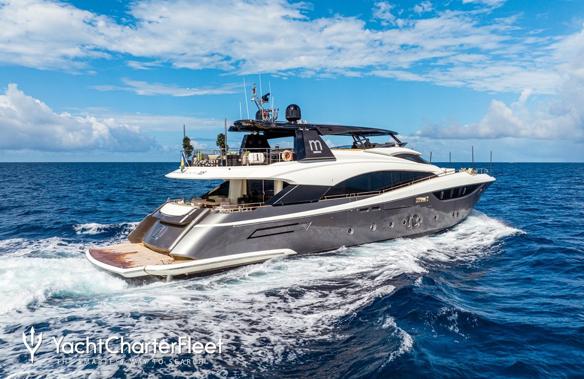 The award winning 32.26m/105'10" motor yacht 'Cielo Nero' by the Italian shipyard Monte Carlo Yachts offers flexible accommodation for up to 10 guests in 5 cabins and features interior styling by Italian designer Nuvolari Lenard.