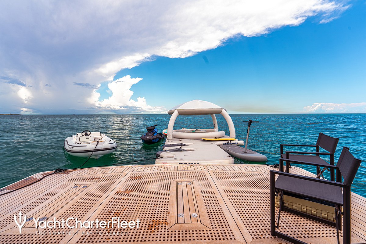 Cielo Nero has a good selection of water toys and accessories to entertain you and your guests whilst on charter. Take to the sea on the Jet Skis offering you power and control on the water. Also there are towable toys offering fun and adventure. Additionally, there are SEABOBs providing agile cruising and diving. If that isn't enough Cielo Nero also features beach games, inflatable water toys and snorkelling equipment.