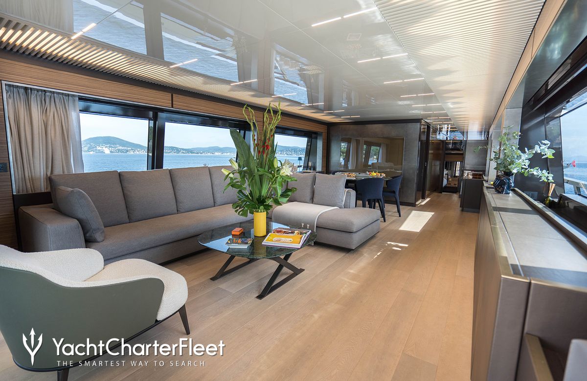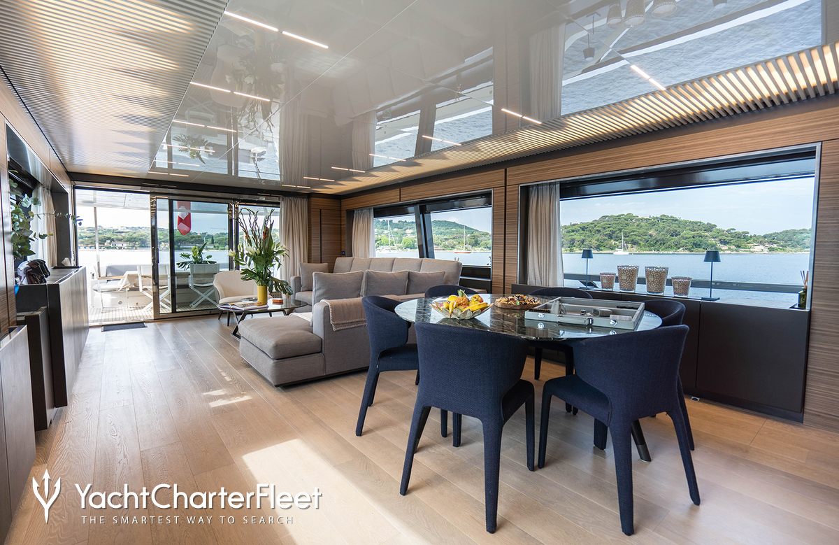 Whatever your activities on your charter, you'll find some impressive features are seamlessly integrated to help you including Wi-Fi connectivity, allowing you to stay connected at all times, should you wish. You can stay comfortable on board whatever the weather, with air conditioning during your charter.
