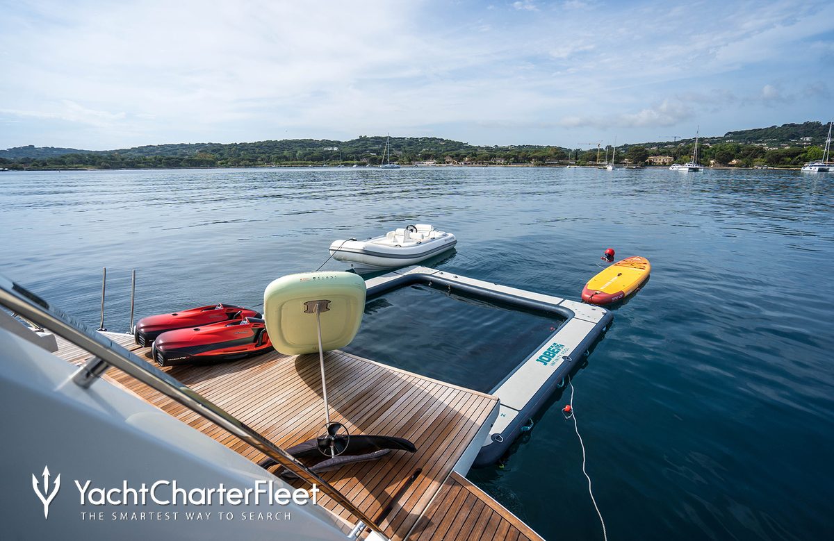 Daddy's Dream 2 has a good selection of water toys and accessories to entertain you and your guests whilst on charter. Principle among these are waterskis that are hugely entertaining whether you are a beginner or a seasoned pro. Also there are two SEABOBs, that allow you to skim along the surface or steer under the crystal water and experience life swimming with the fish. In addition there are wakeboards so guests can show off at speed. If that isn't enough Daddy's Dream 2 also features paddleboards and snorkelling equipment.