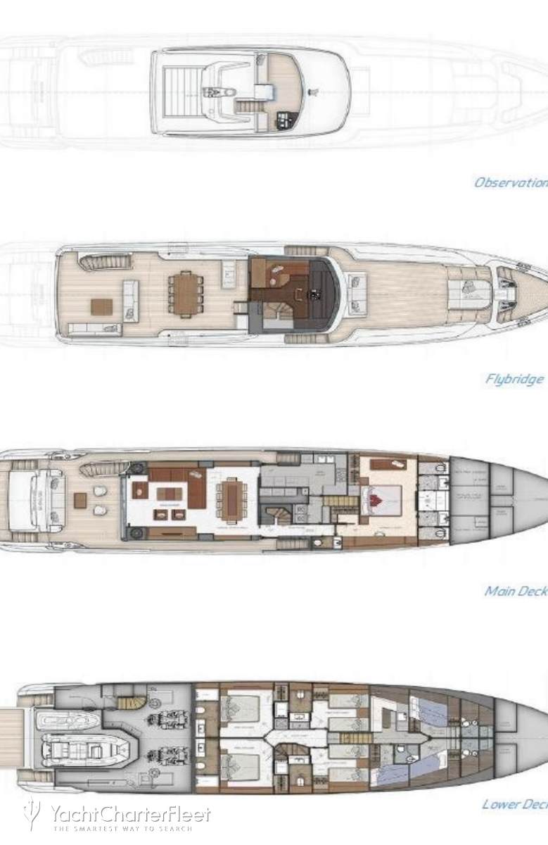 Built in 2019, Bella Vita offers guest accommodation for up to 10 guests in 5 suites comprising a master suite, one VIP cabin, one double cabin and two twin cabins. The supremely spacious full beam master suite benefits from a his and her bathroom. She is also capable of carrying up to 5 crew onboard to ensure a relaxed luxury yacht charter experience.