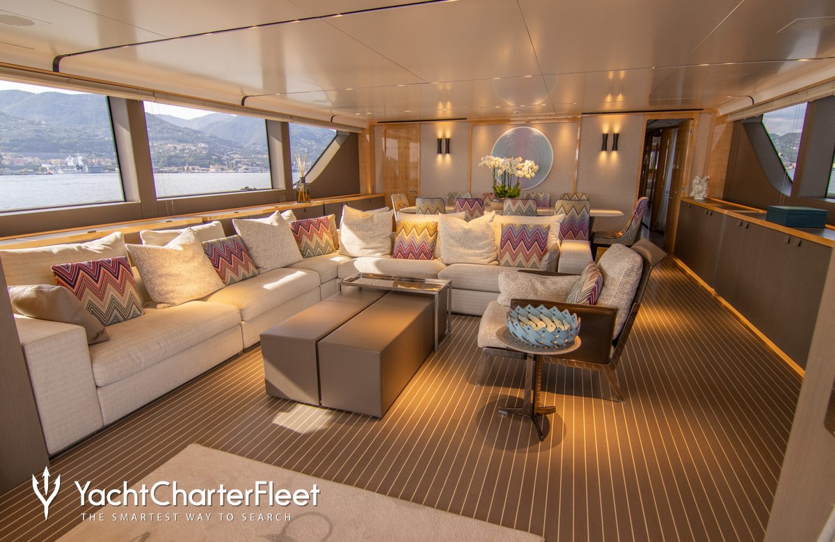 Whatever your activities on your charter, you'll find some impressive features are seamlessly integrated to help you such as Wi-Fi connectivity, allowing you to stay connected at all times, should you wish. You can stay comfortable on board whatever the weather, with air conditioning during your charter.