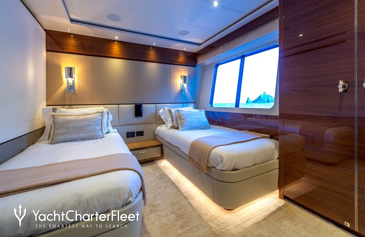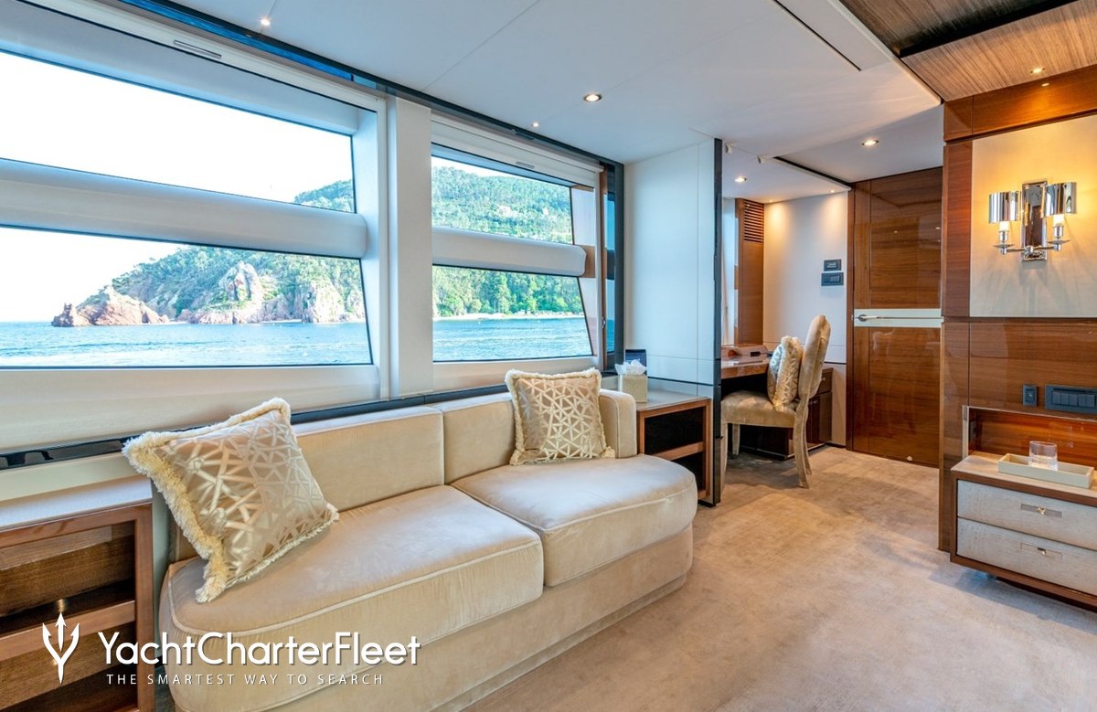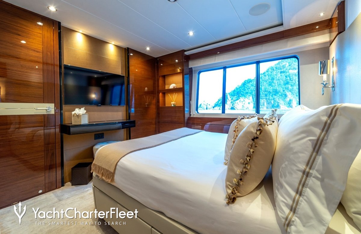 Built in 2017, Kohuba offers guest accommodation for up to 10 guests in 5 suites comprising a master suite, three VIP cabins and one cabin that can operate as twin or double. The supremely spacious full beam master suite features extensive storage space provided by the dressing room. She is also capable of carrying up to 6 crew onboard to ensure a relaxed luxury yacht charter experience.