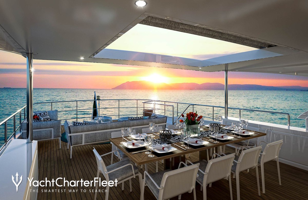 Keeping comfortable and entertained on Naz is easy thanks to the available amenities, notably a deck jacuzzi, perfect to enjoy the scenery with your favourite drink in hand.