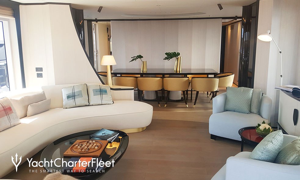 Whatever your activities on your charter, you'll find some impressive features are seamlessly integrated to help you, notably satellite communications, keeping you connected on any voyage. Whether you want to work, use social media or stream movies on board this yacht, you can with Wi-Fi connectivity and in addition you can stay comfortable on board whatever the weather, with air conditioning during your charter.
