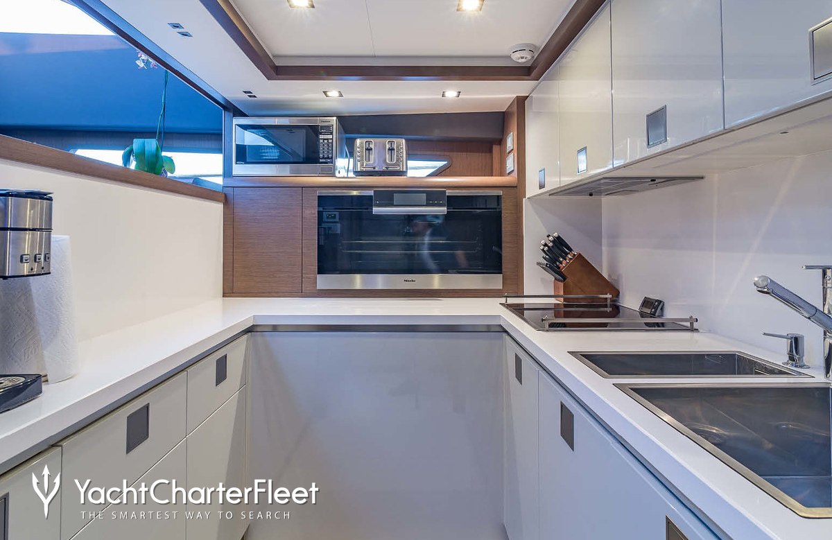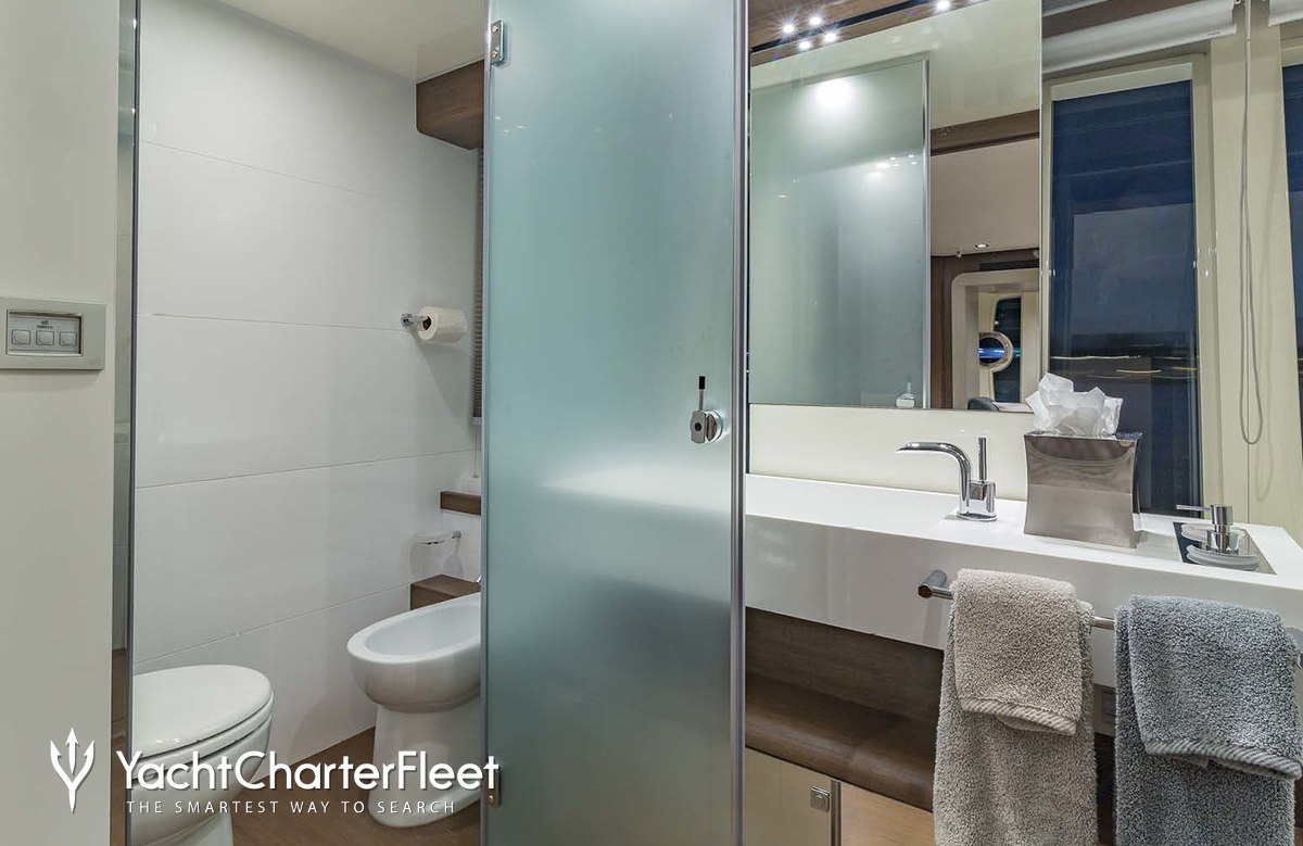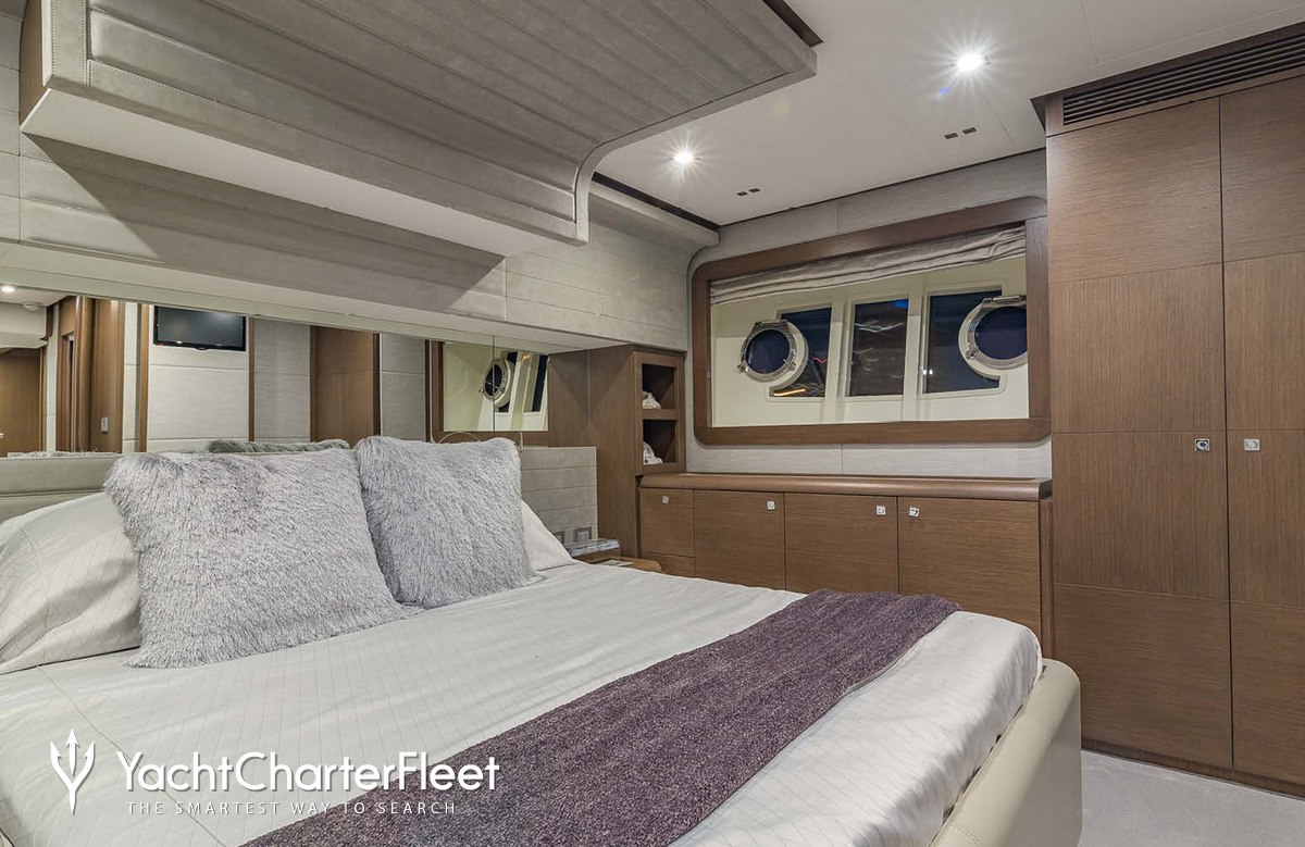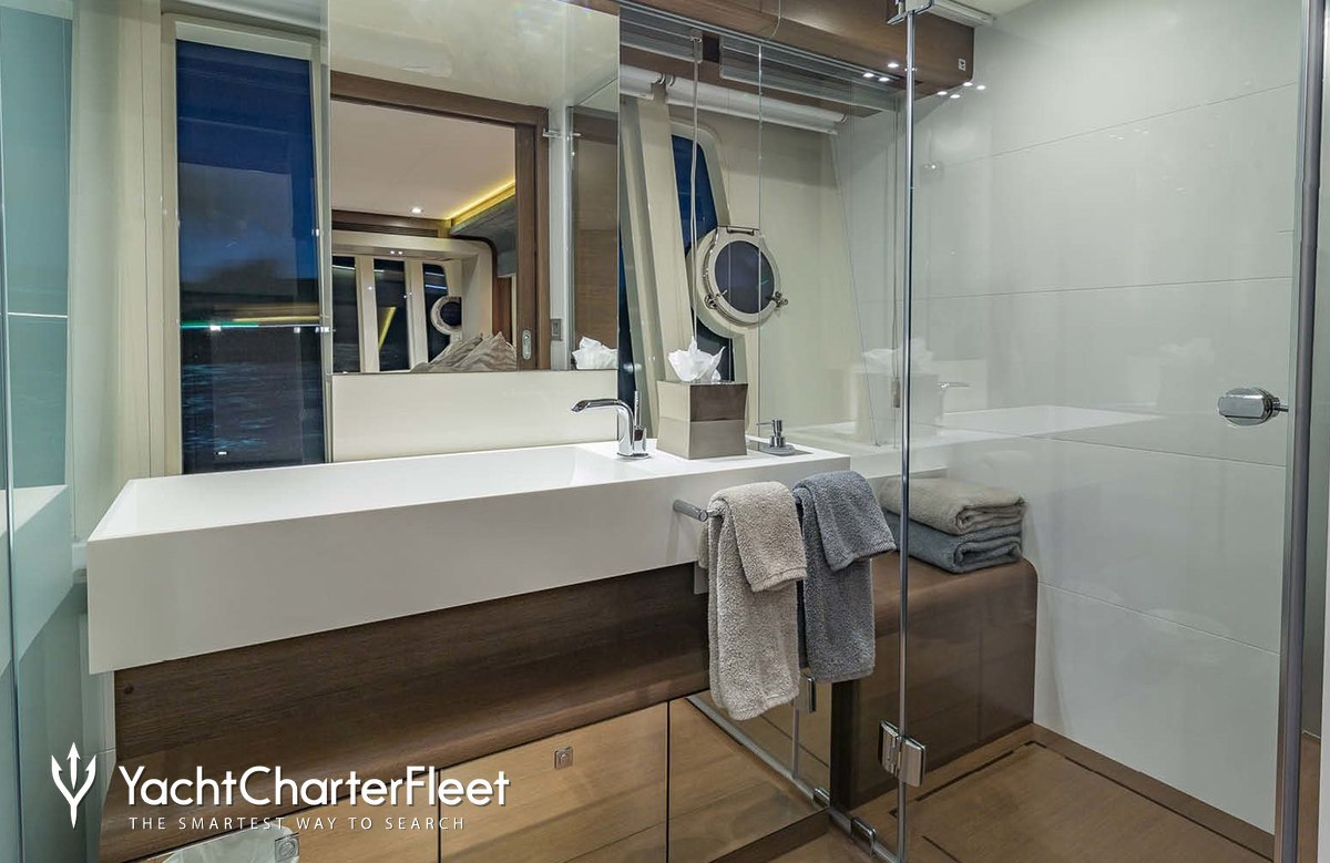 Leon offers guest accommodation for up to 8 guests in 4 suites comprising a master suite, two double cabins and one twin cabin. The bed configuration includes 3 queen and 2 singles. She is also capable of carrying up to 3 crew onboard to ensure a relaxed luxury yacht charter experience.