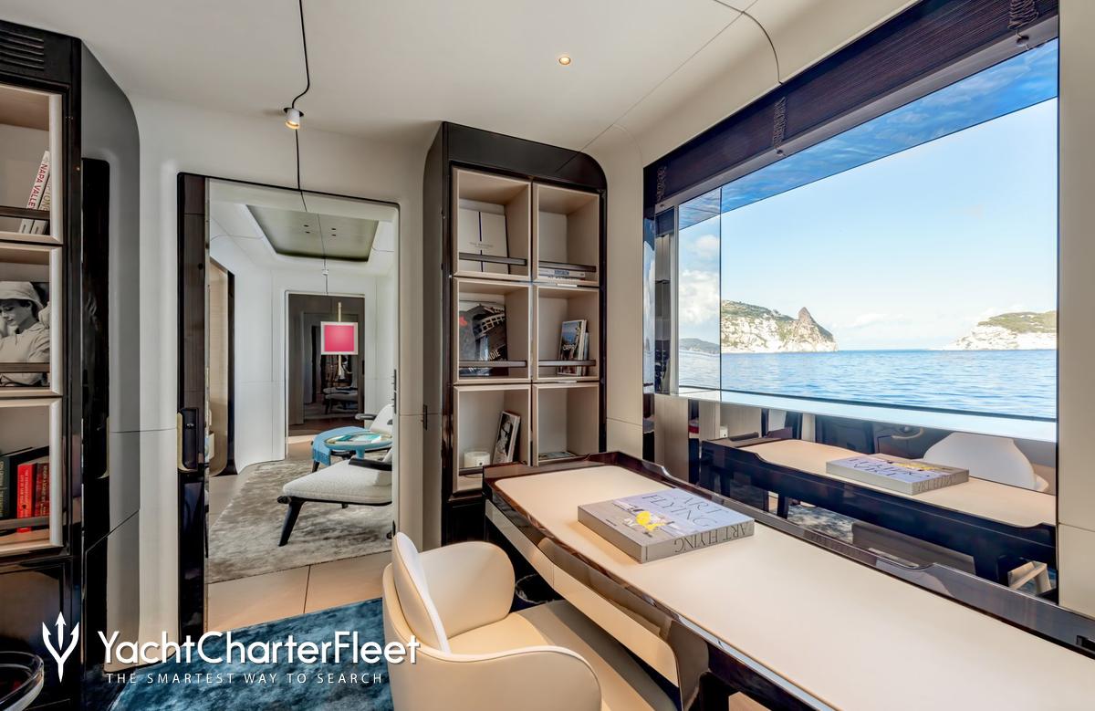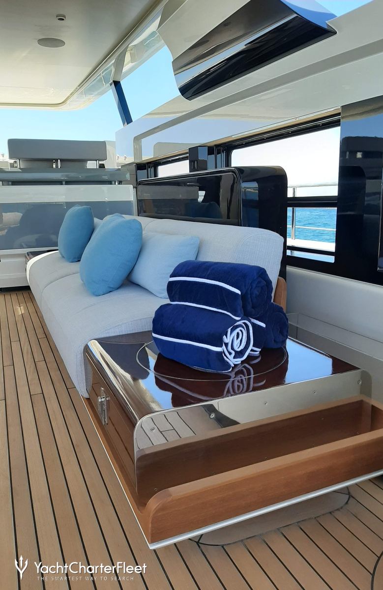 Katana X benefits from some excellent features to improve your charter including the underwater lights, adding spectacle and style after dark. Whether you want to work, use social media or stream movies on board this yacht, you can with Wi-Fi connectivity or you can stay comfortable on board whatever the weather, with air conditioning during your charter.