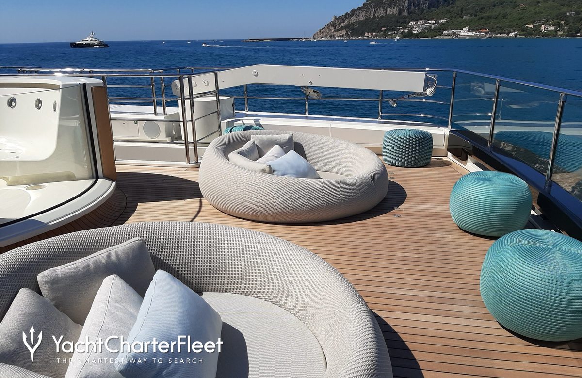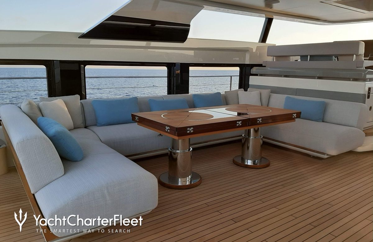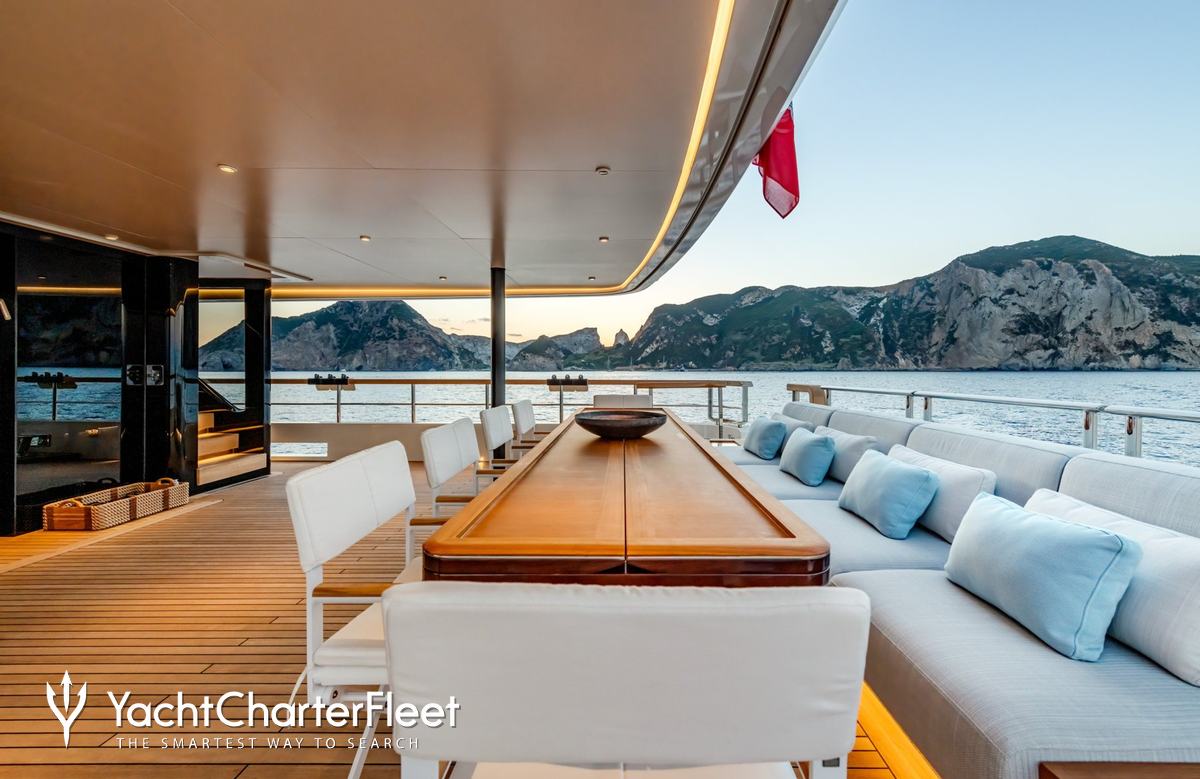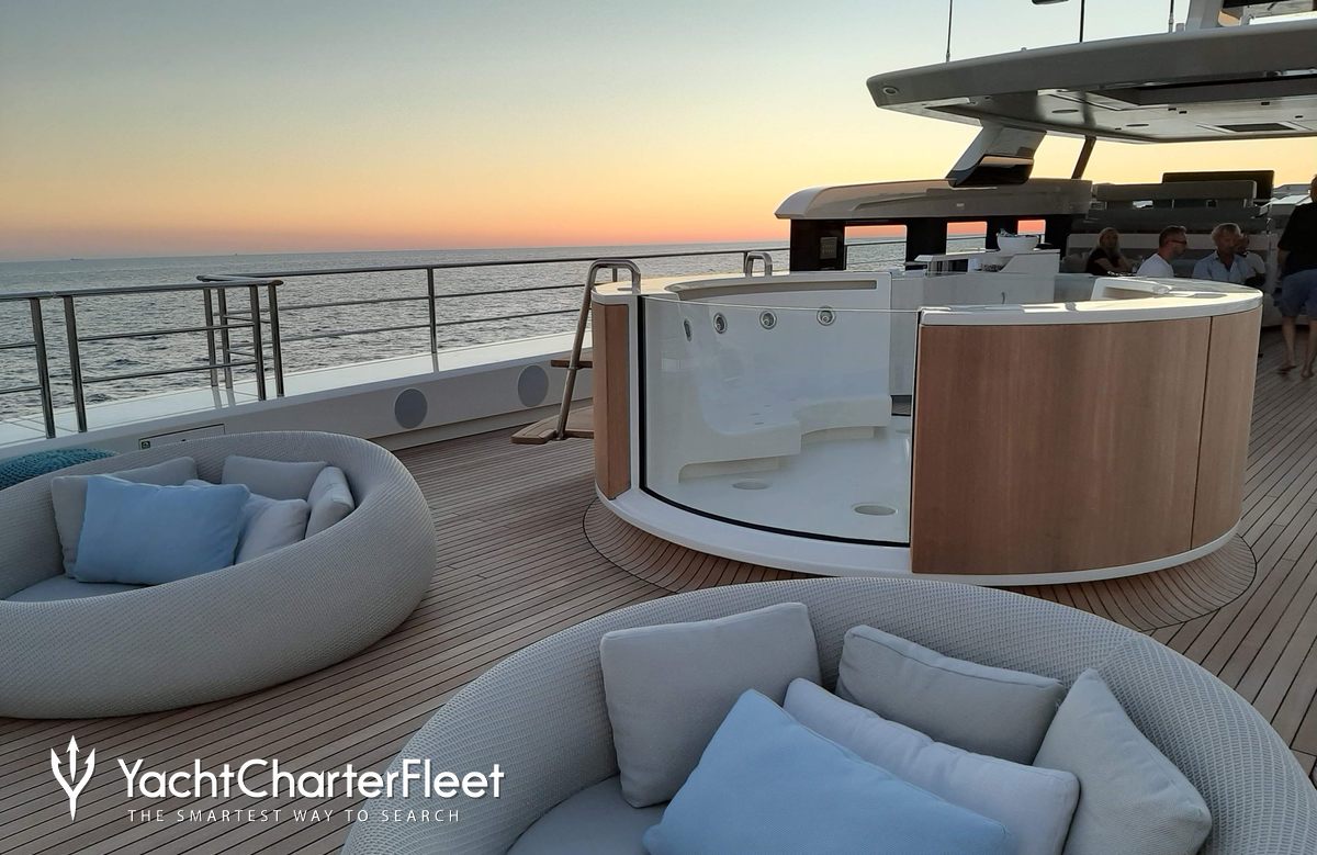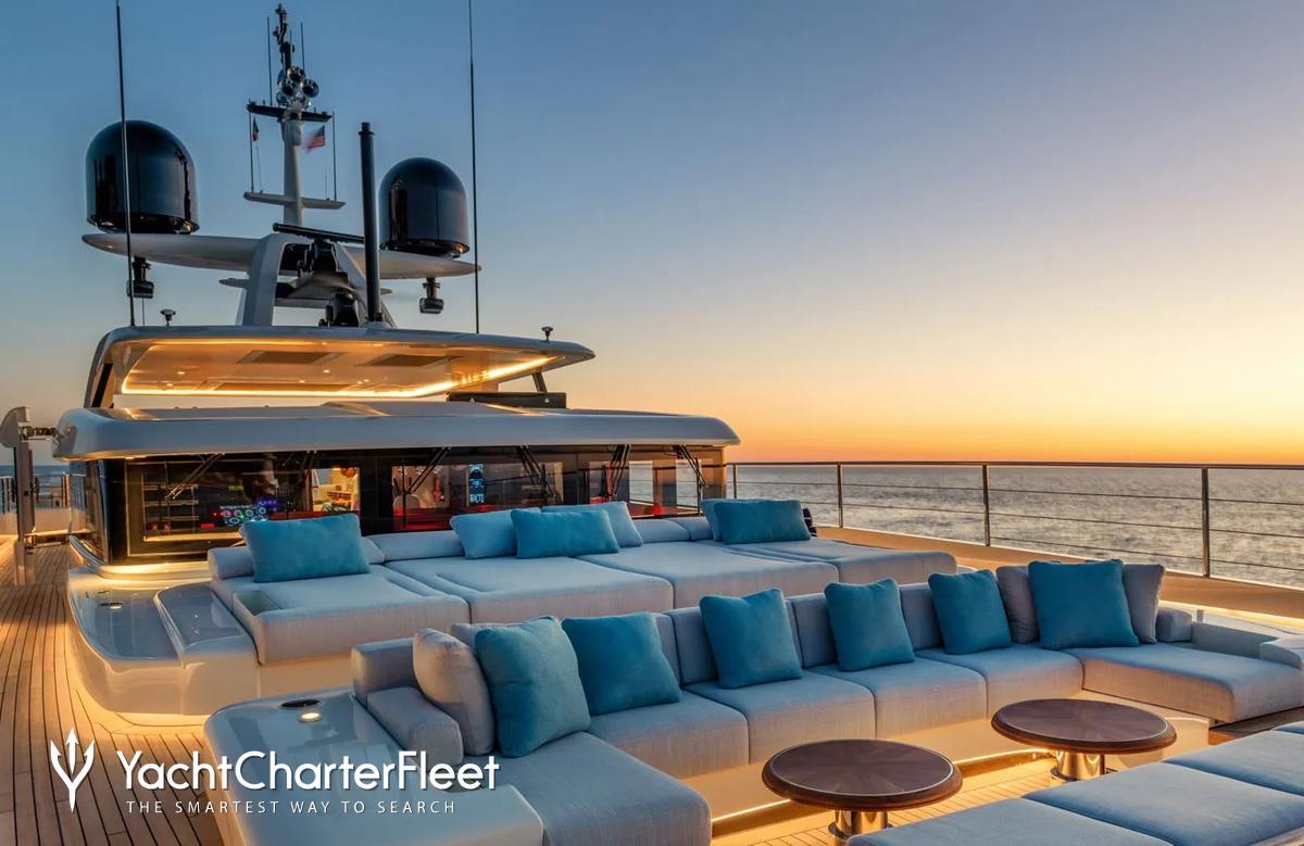 Built in 2020, Katana X offers beautifully proportioned decks for exquisite indoor/outdoor living during a luxury yacht charter. Her features include underwater lights, beach club and gym.