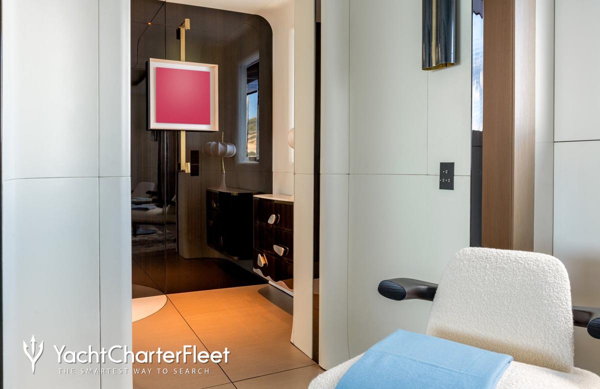 Keeping comfortable and entertained on Katana X is easy thanks to the available amenities including a beach club for you to relax on the edge of the water. A gym with all the latest equipment is available for a good work out or retreat to the deck jacuzzi and soak up the scenery.