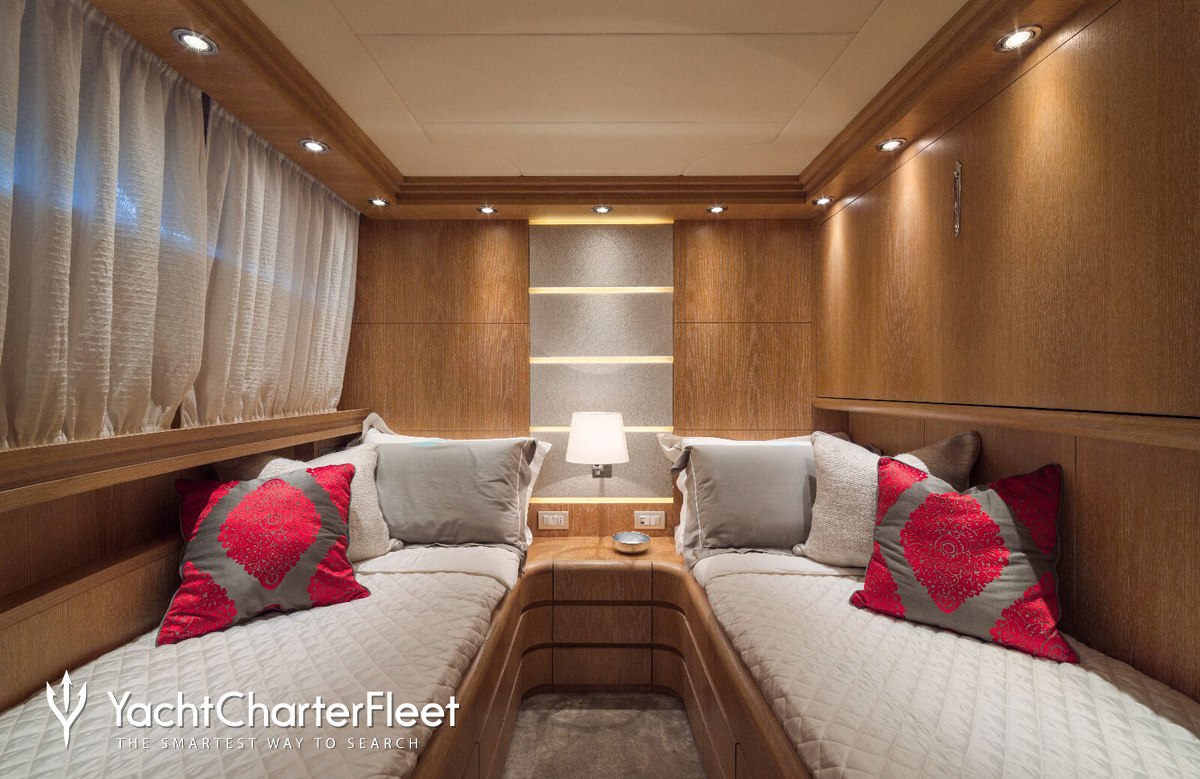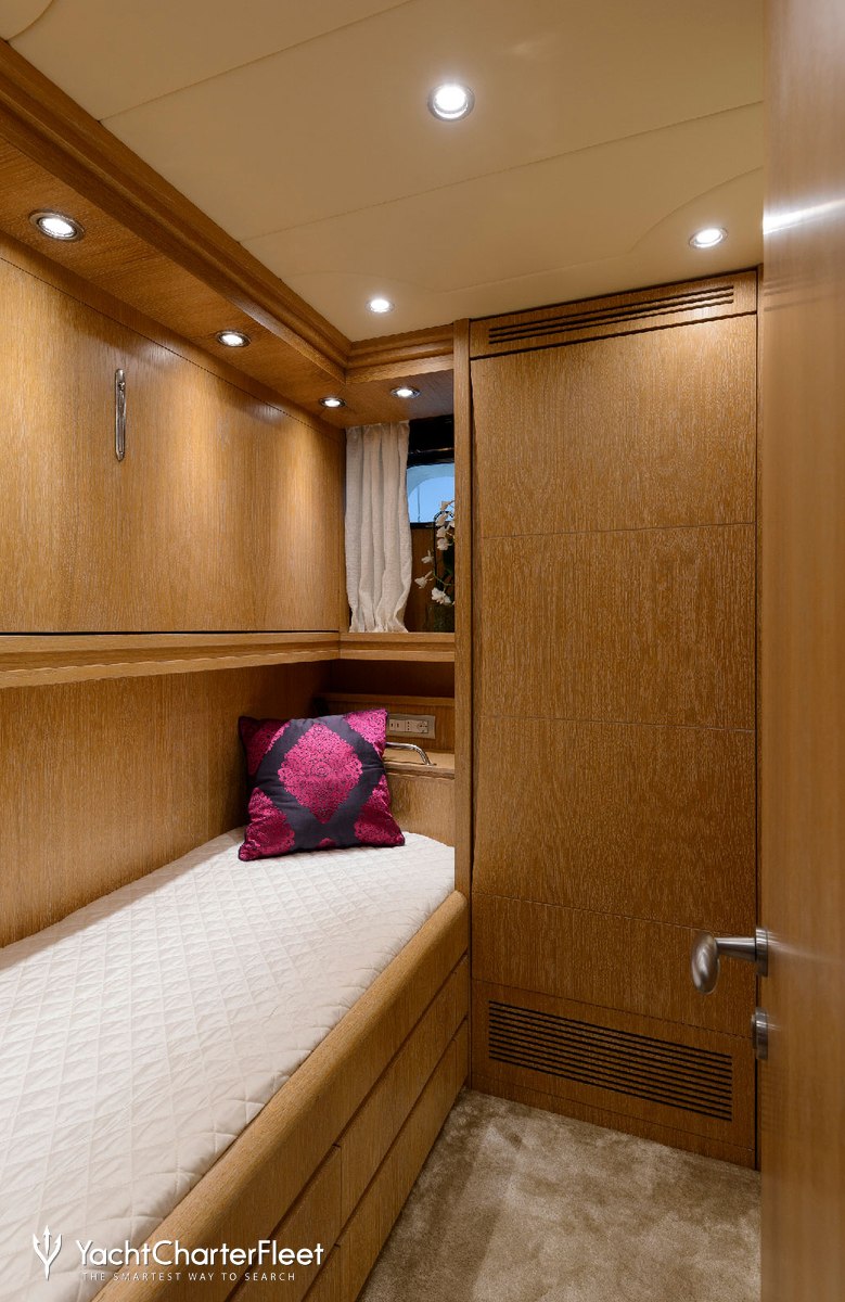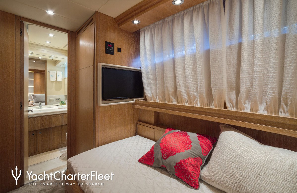 Amaya offers guest accommodation for up to 11 guests in 5 suites comprising a master suite, two VIP cabins, one double cabin and one twin cabin. She is also capable of carrying up to 5 crew onboard to ensure a relaxed luxury yacht charter experience.
