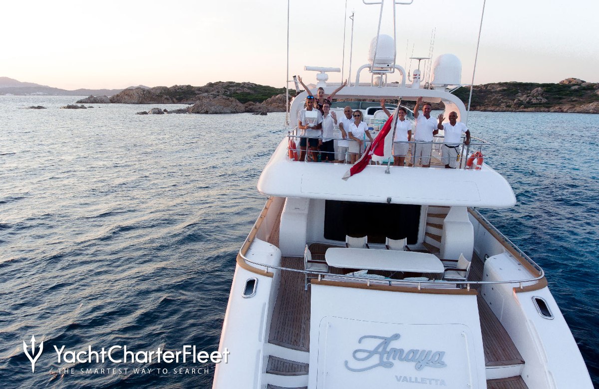 Amaya and her crew are available for charter this winter for cruising within . She is already accepting bookings this summer for cruising in the Mediterranean.